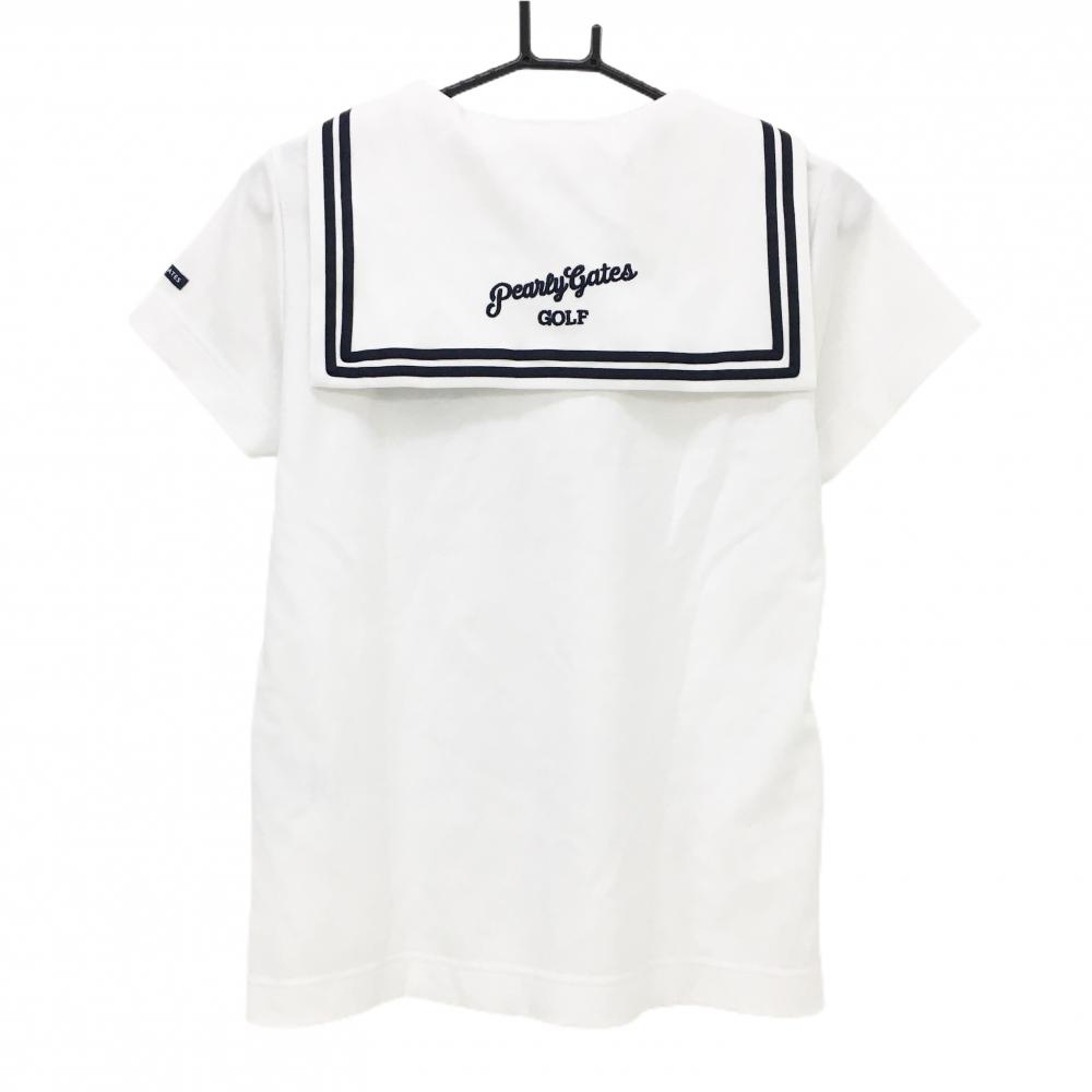 【美品】パーリーゲイツ 半袖ポロシャツ 白×ネイビー セーラー襟 レディース 0(S) ゴルフウェア PEARLY GATES