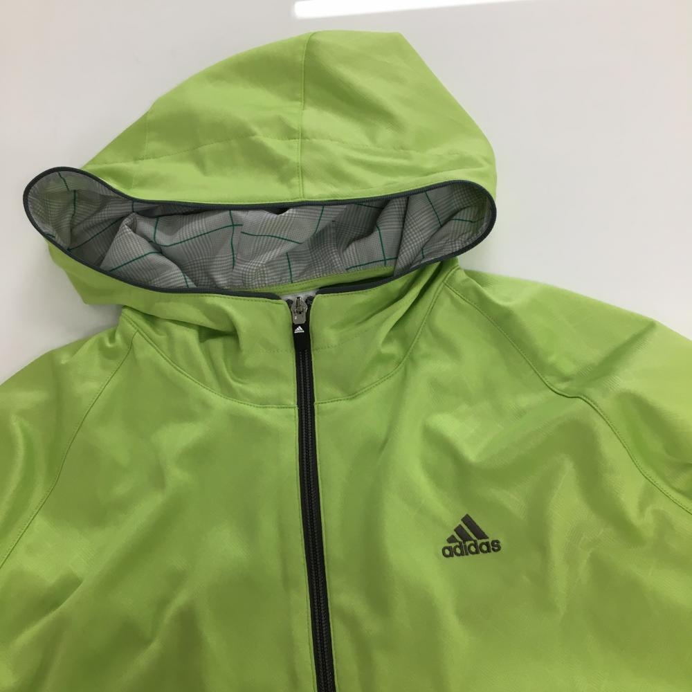 アディダス ジップパーカー ライトグリーン チェック地模様 ロゴ刺しゅう メンズ O/XG ゴルフウェア adidas