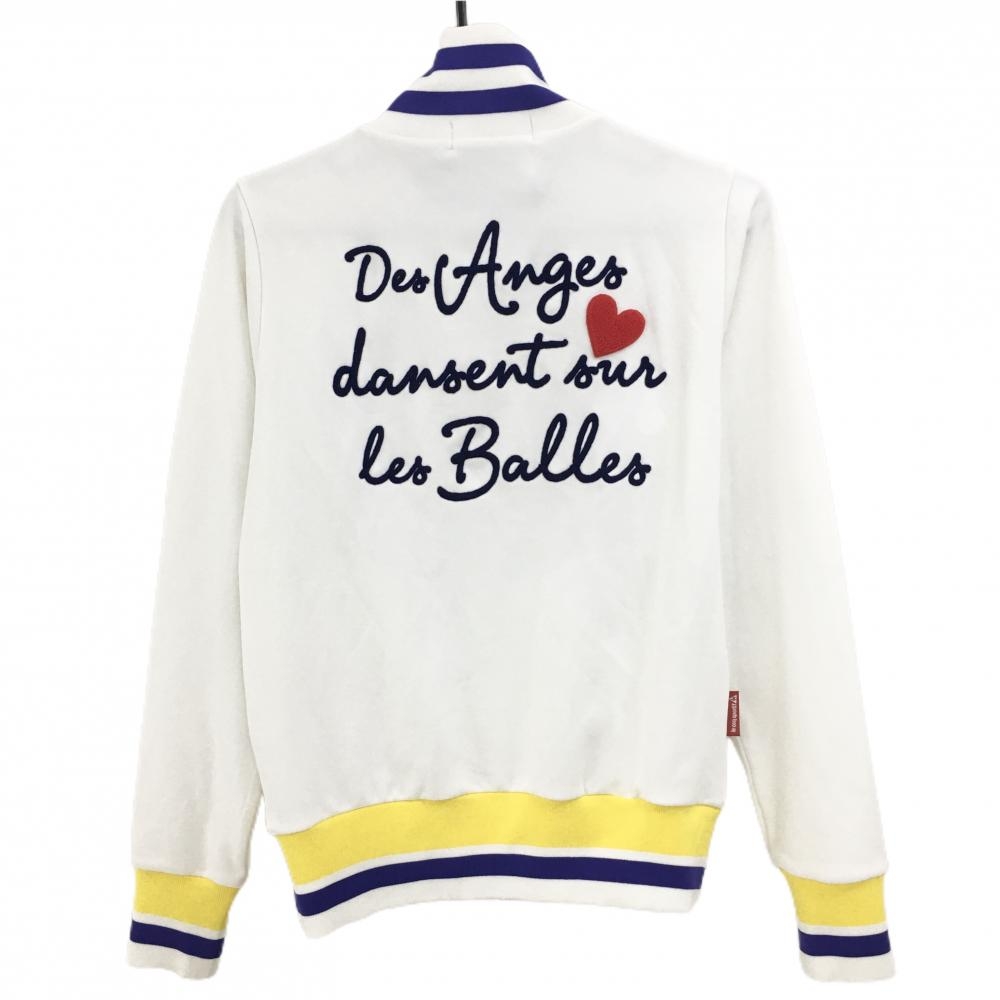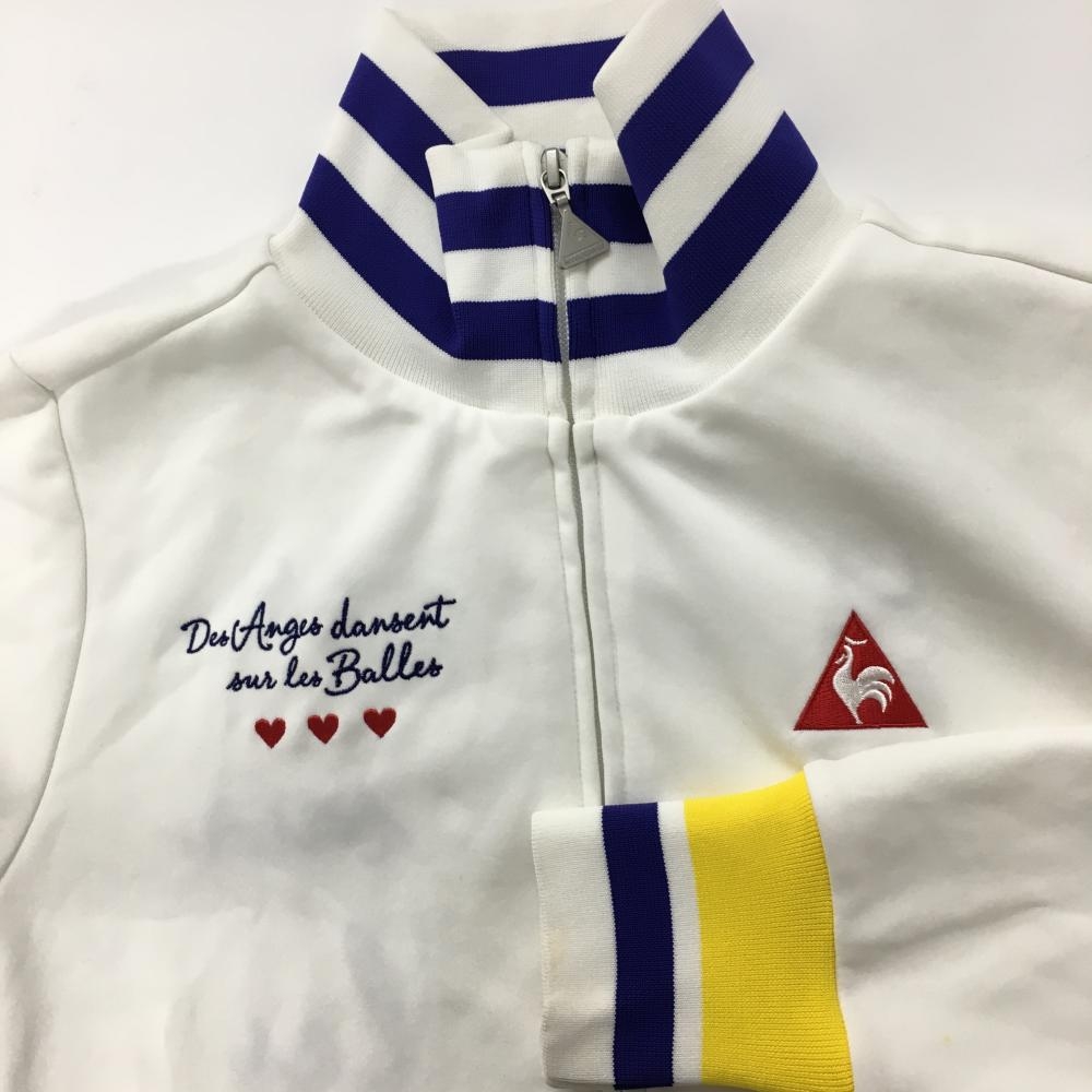 【美品】ルコックゴルフ ジャケットブルゾン 白×ネイビー系×イエロー リブライン レディース M ゴルフウェア le coq sportif