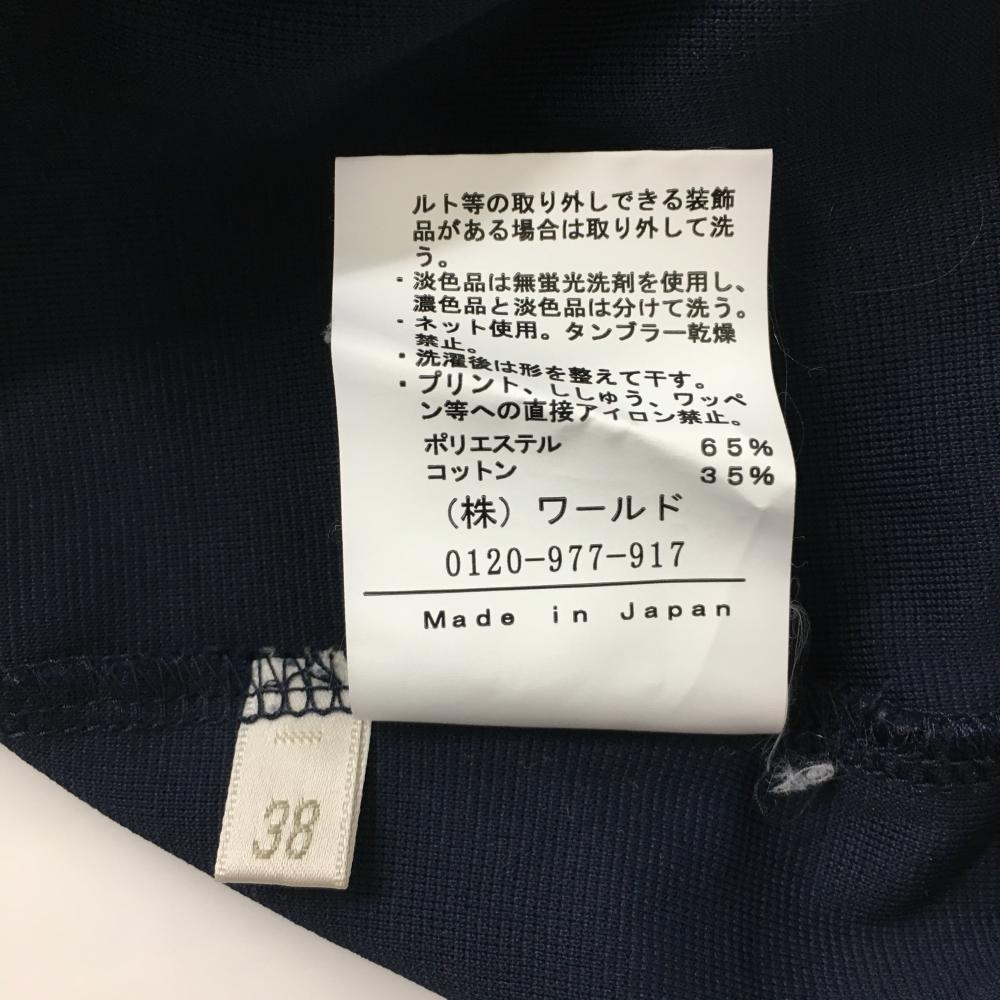 【超美品】アダバット 半袖ポロワンピース ネイビー×白 スカート部ボーダー インナーパンツ付 レディース 38(M) ゴルフウェア adabat