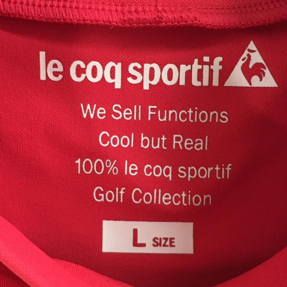 【美品】ルコックゴルフ 半袖ハイネックシャツ レッド×ライトグリーン 洋ナシプリント レディース L ゴルフウェア le coq sportif