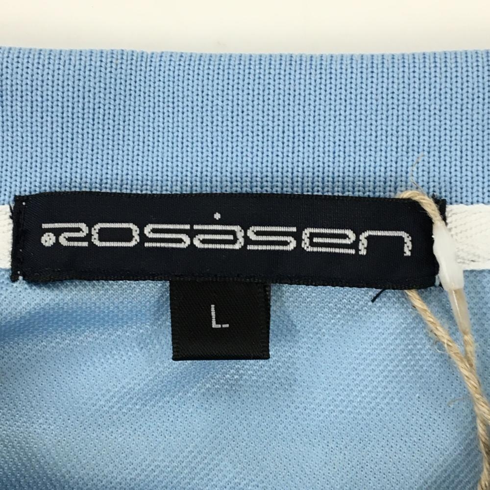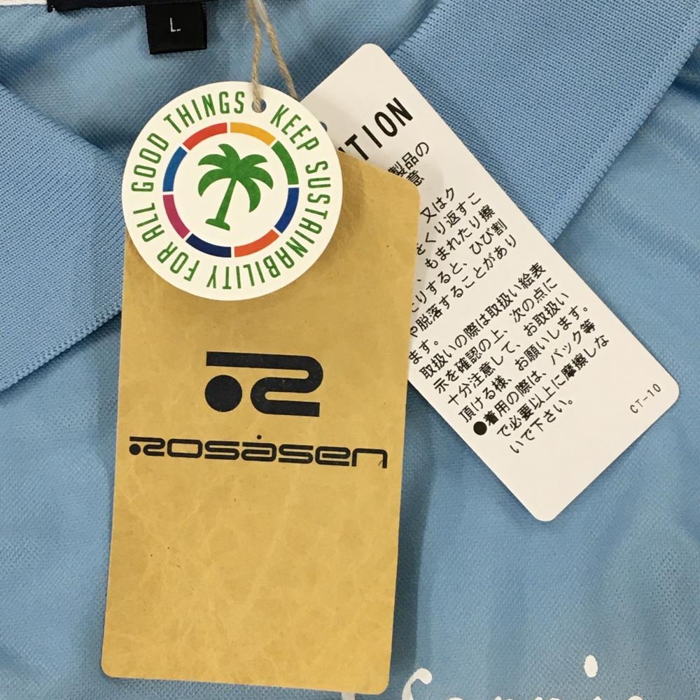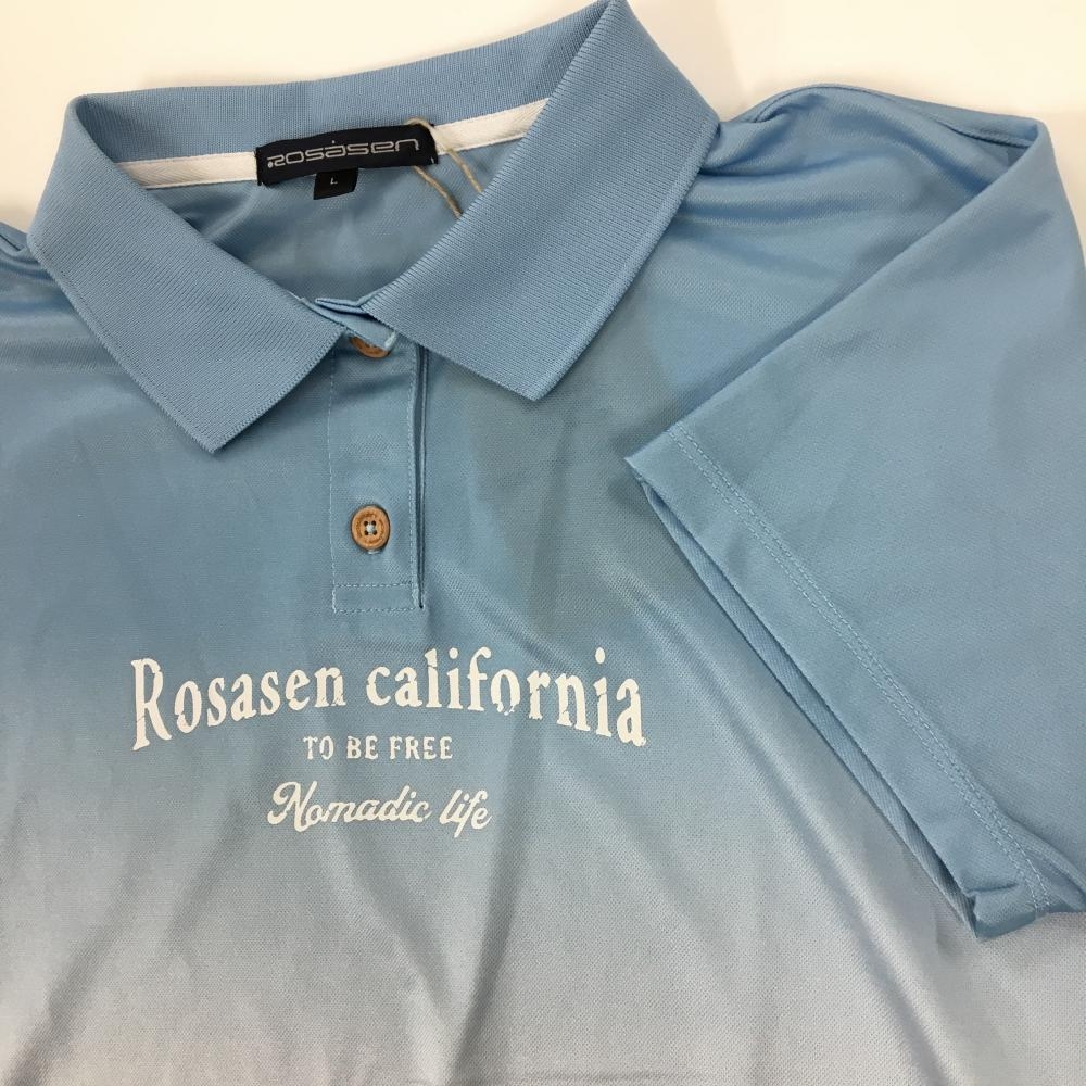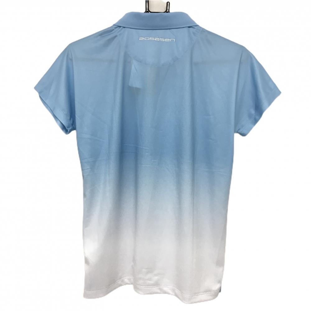 【新品】ロサーセン 半袖ポロシャツ ライトブルー×白 グラデーション フロントロゴ レディース L ゴルフウェア 2024年モデル Rosasen