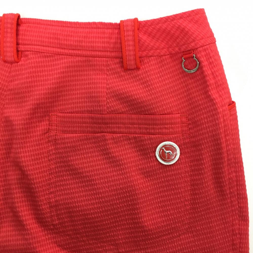 【超美品】アダバット 七分丈パンツ レッド ボーダー柄 サッカー生地 バックロゴ レディース 40(L) ゴルフウェア adabat