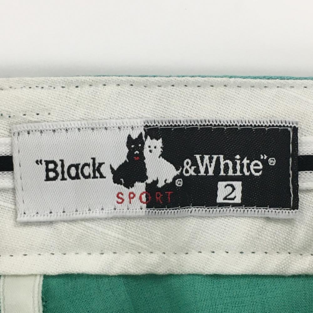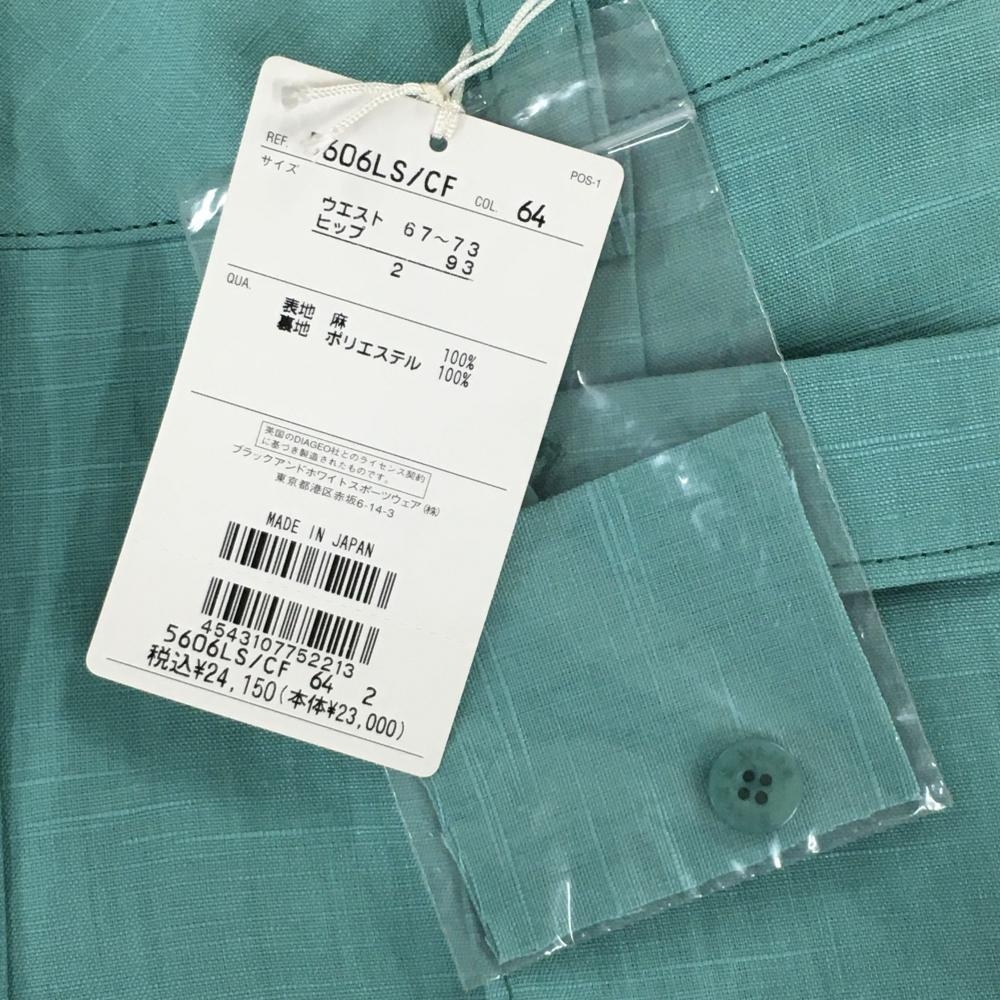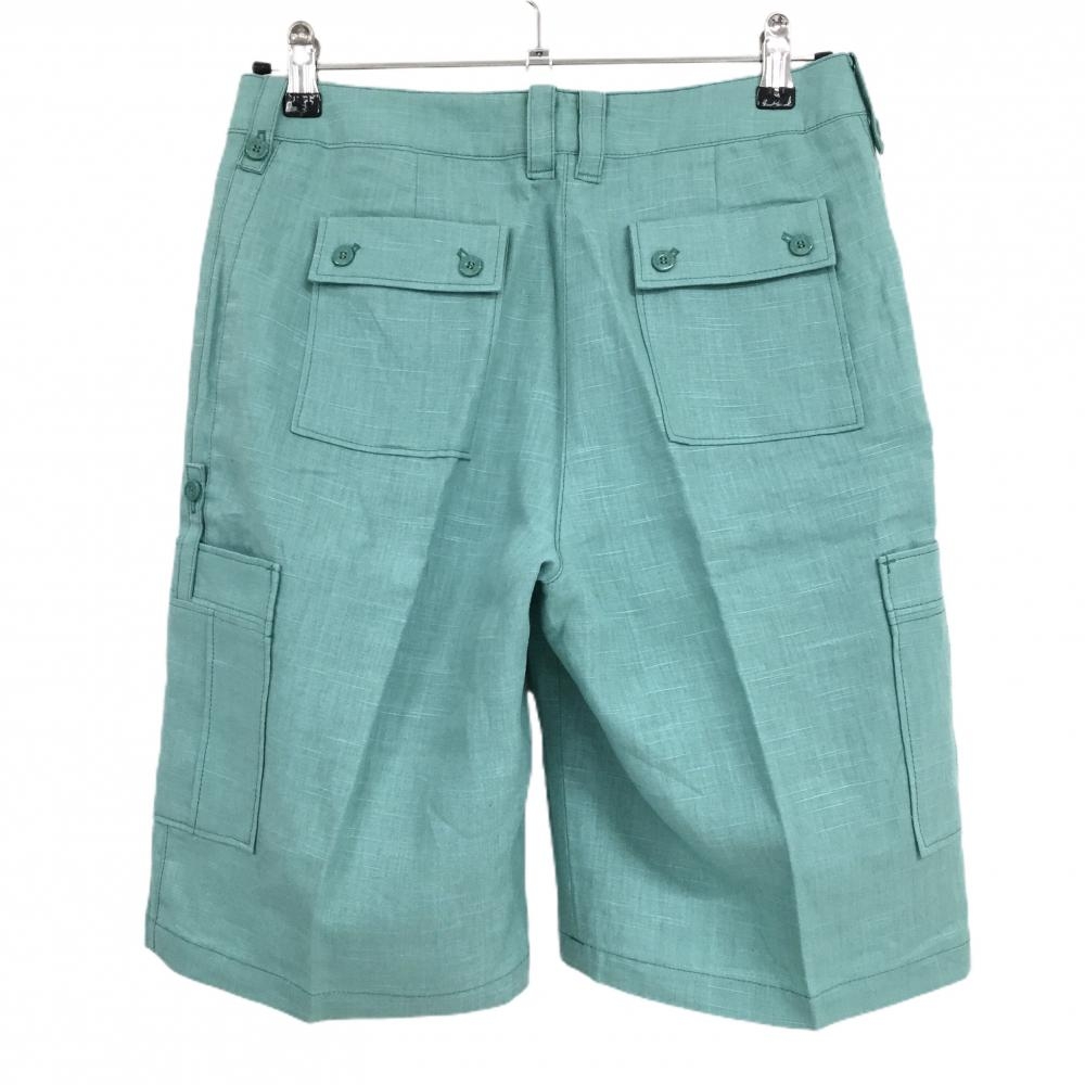 【新品】ブラックアンドホワイト ハーフパンツ グリーン カーゴパンツ 麻100% 裏地付 レディース 2(M) ゴルフウェア Black&White