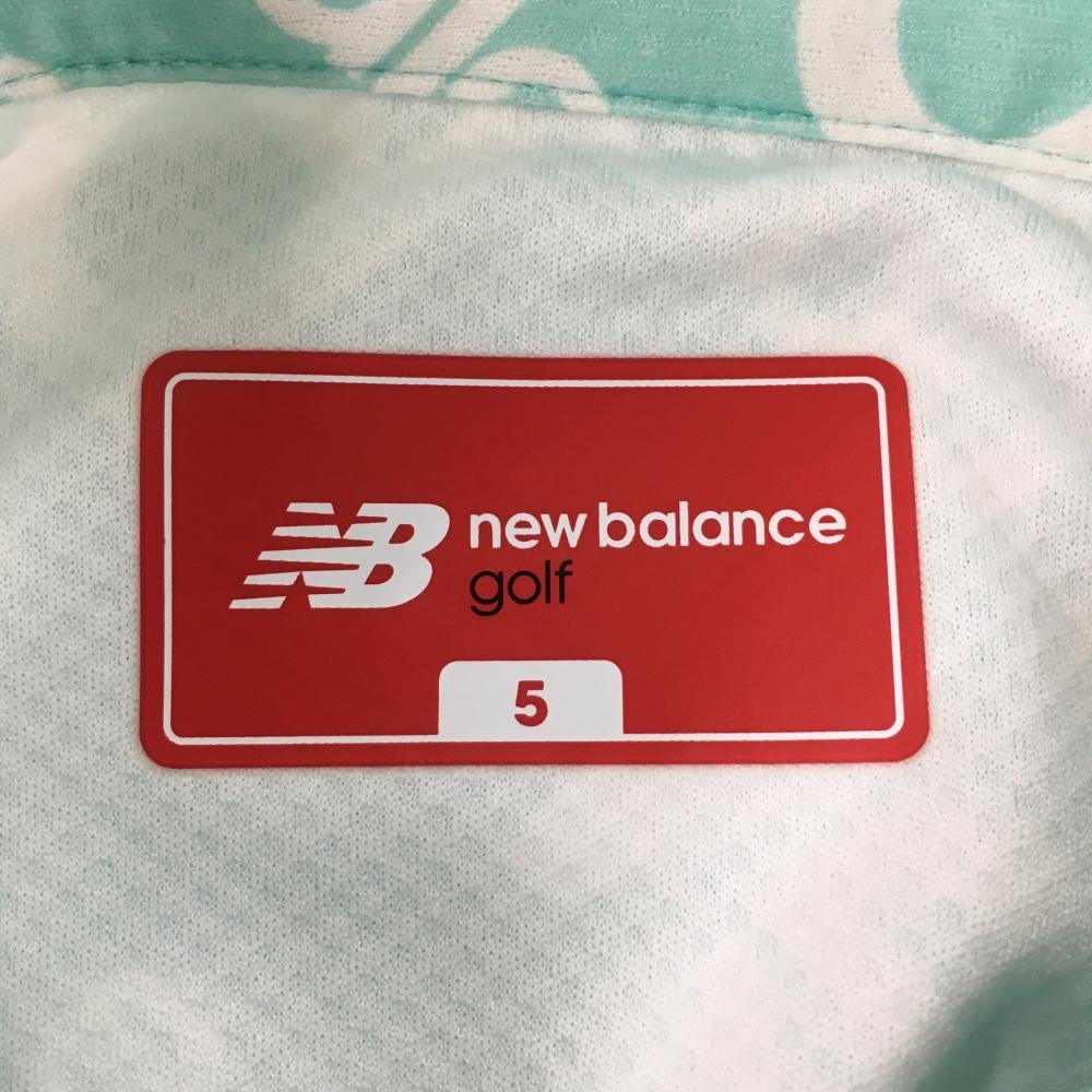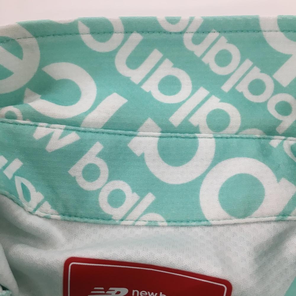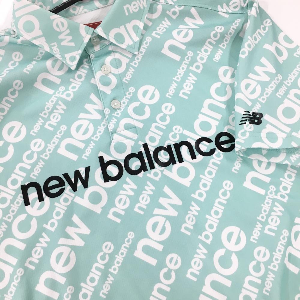 【美品】ニューバランスゴルフ 半袖ポロシャツ ライトグリーン×白 ロゴ総柄 メンズ 5(L) ゴルフウェア 2023年モデル New Balance