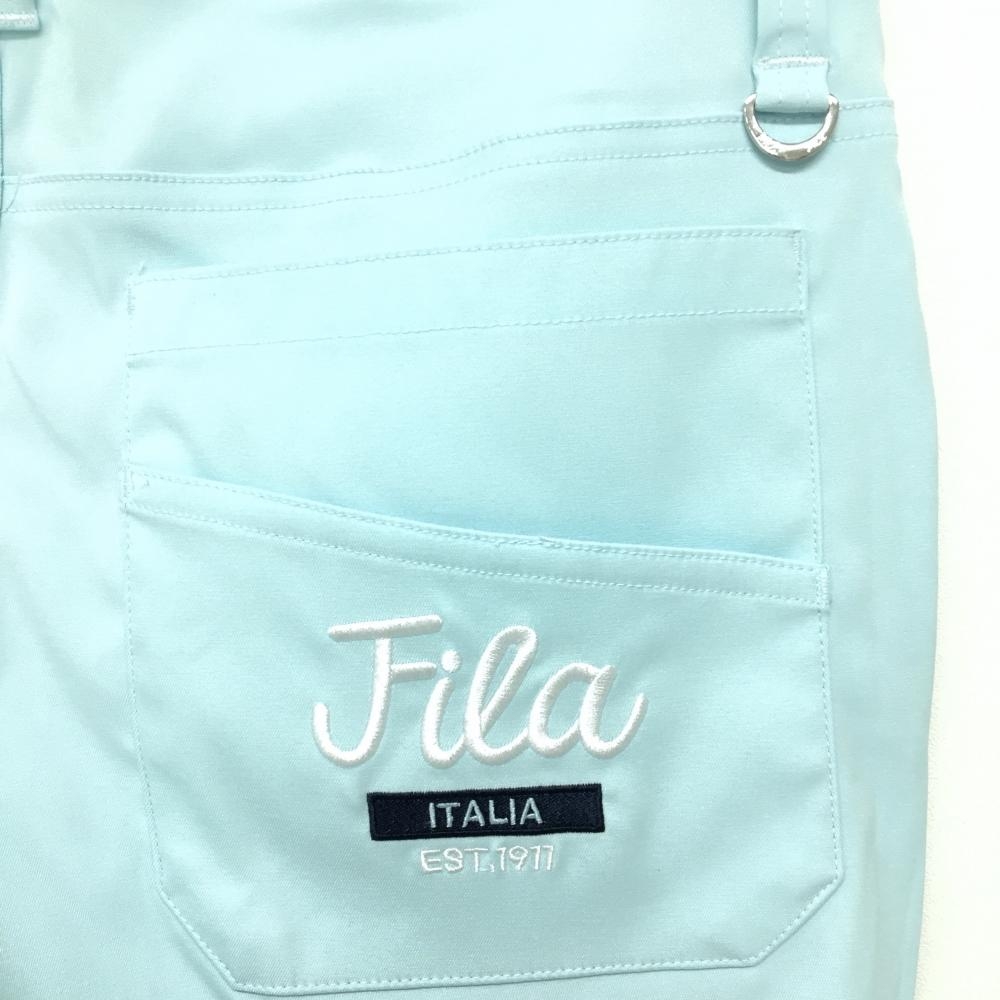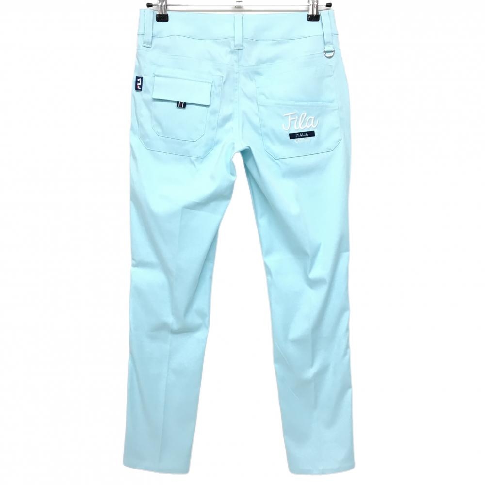 【超美品】フィラゴルフ パンツ ライトブルー バック刺しゅう ストレッチ レディース M ゴルフウェア FILA GOLF