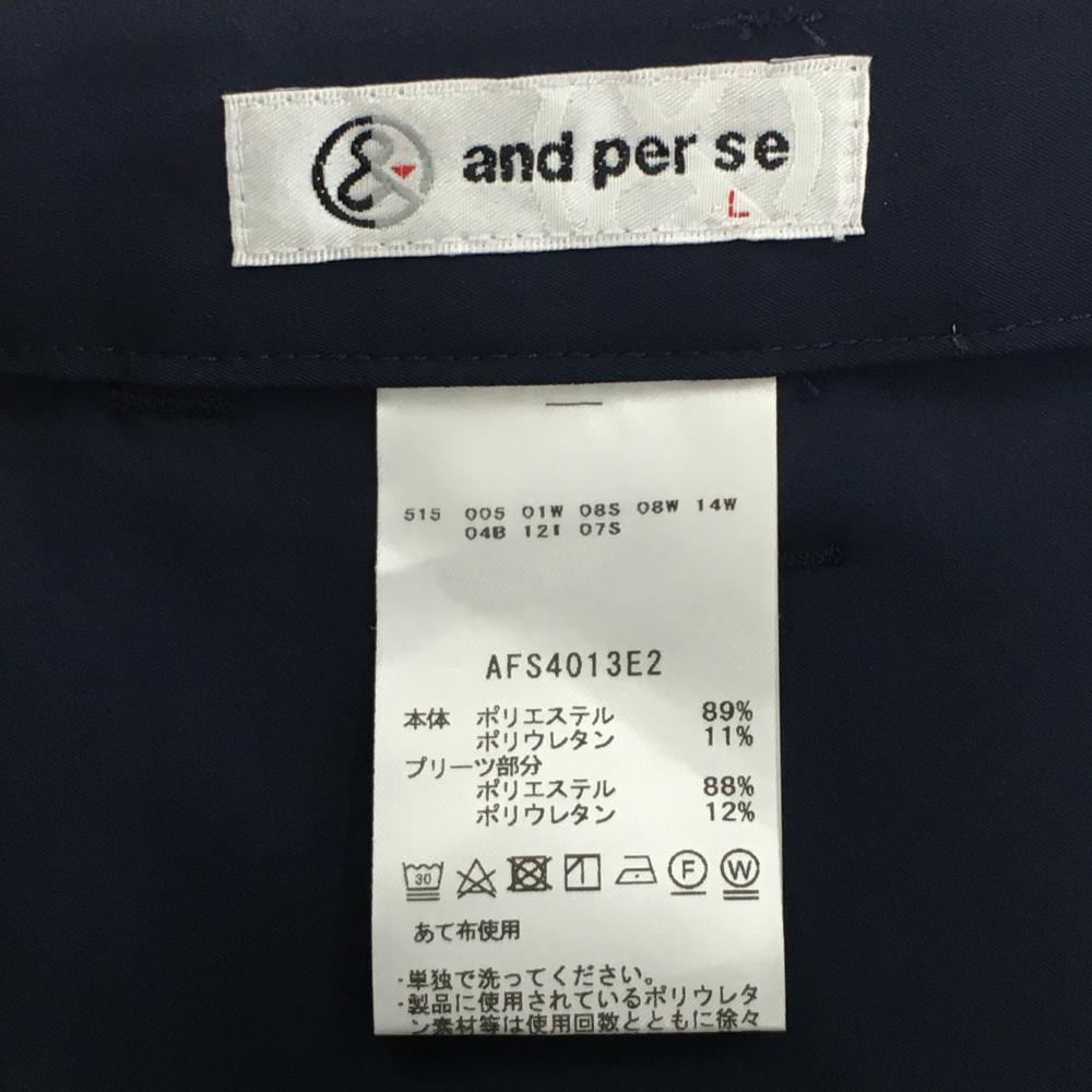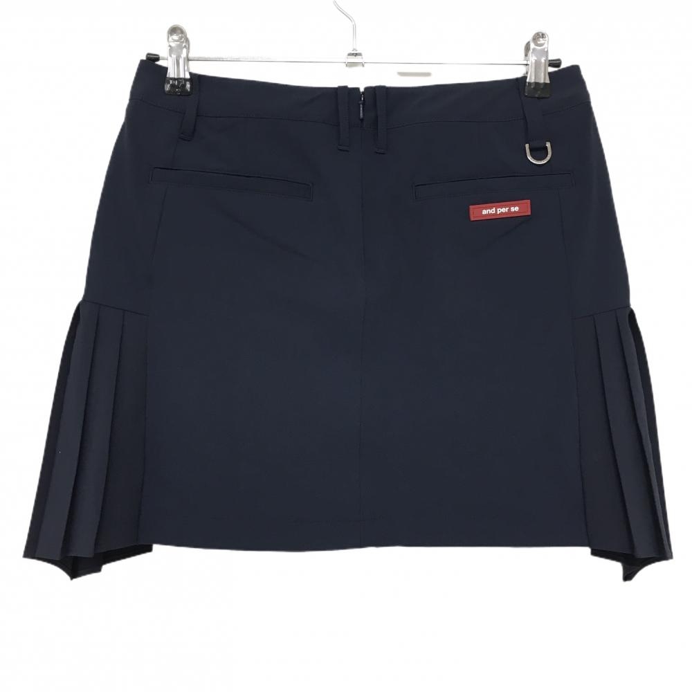 【美品】アンパスィ スカート ネイビー×白 サイドプリーツ 立体ロゴ レディース L ゴルフウェア and per se