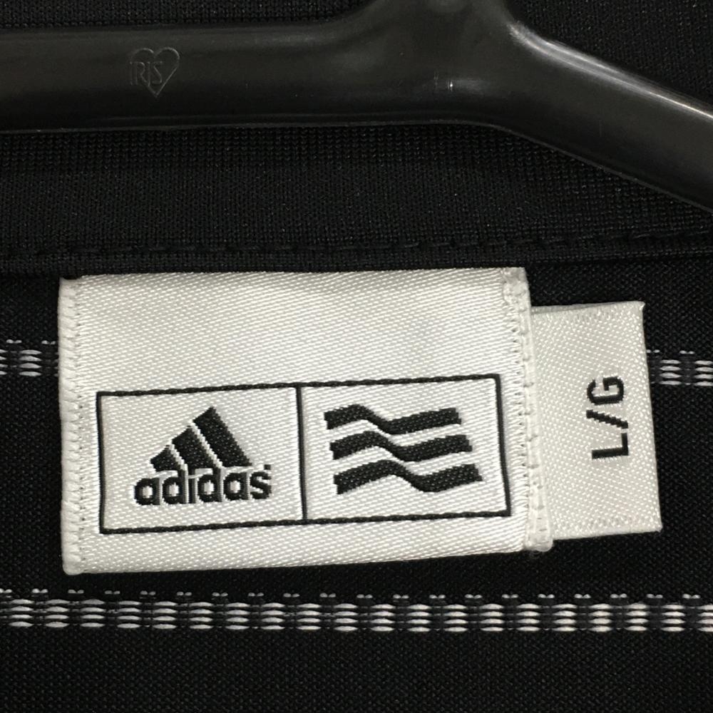 アディダス 半袖ポロシャツ 黒×白 ボーダー メンズ L/G ゴルフウェア adidas