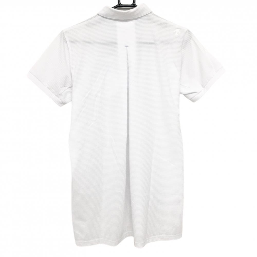 【超美品】スリクソンバイデサント 半袖ポロシャツ 白 ボーダー織生地 チュニック レディース L ゴルフウェア SRIXON