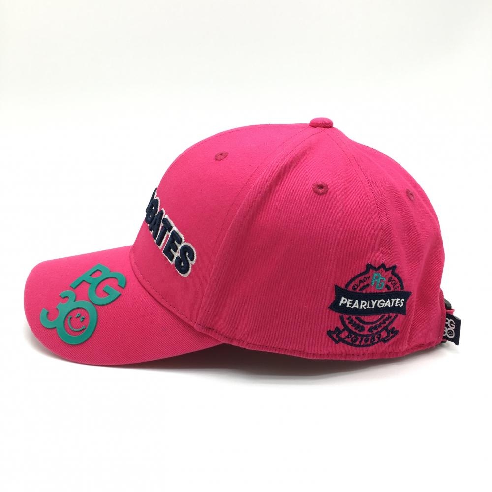 【超美品】パーリーゲイツ キャップ ピンク×ネイビー 30周年 ニコちゃん スマイル コットン100% FR ゴルフウェア PEARLY GATES