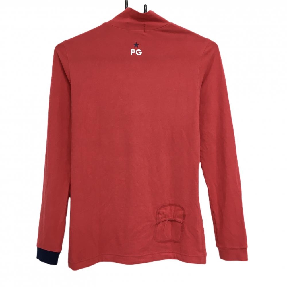 【超美品】パーリーゲイツ 長袖ハイネックシャツ レッド 表微起毛 ハーフジップ ロゴプリント レディース 0(S) ゴルフウェア PEARLY GATES