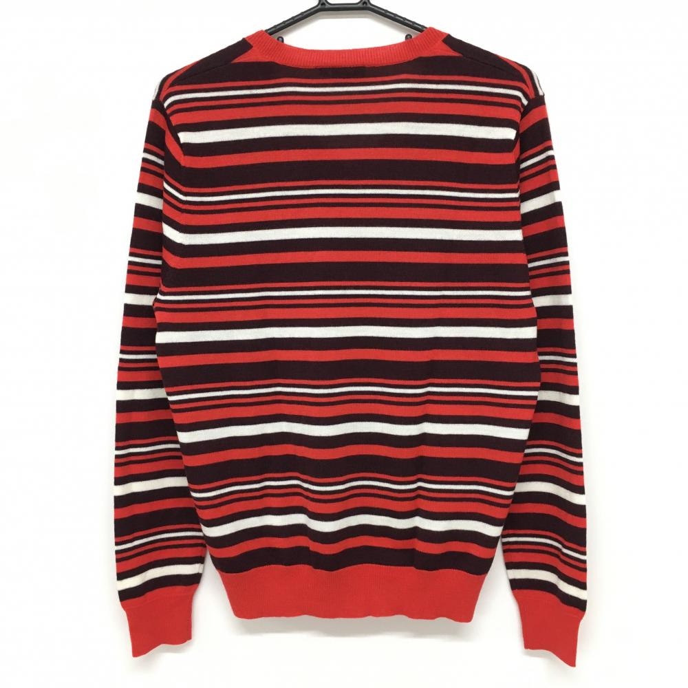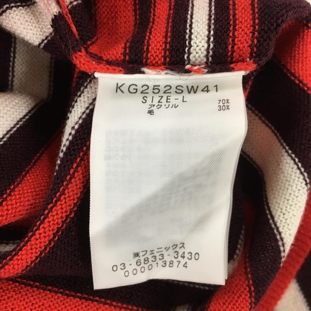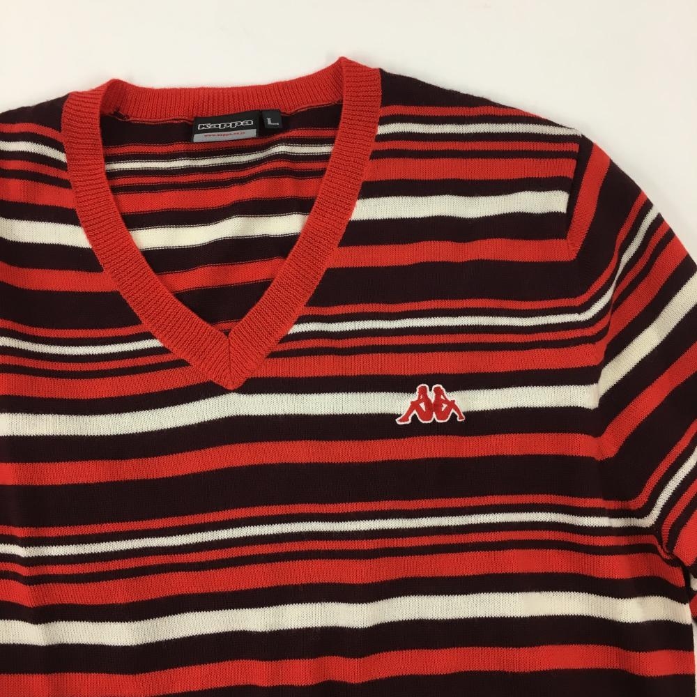 【超美品】カッパ セーター レッド×ボルドー ボーダー Vネック ウール混 ニット メンズ L ゴルフウェア Kappa