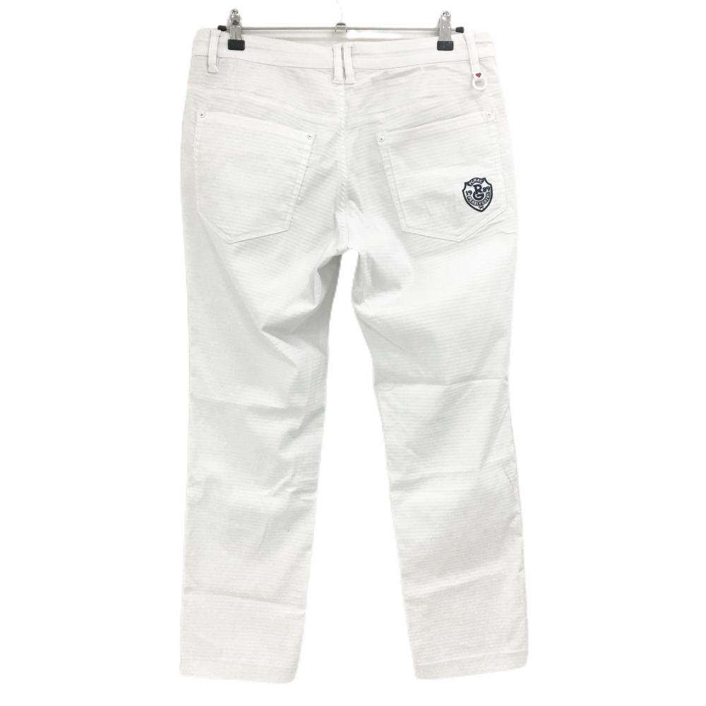 パーリーゲイツ パンツ 白 ロゴネイビー 地模様 ストレッチ メンズ 5(L) ゴルフウェア PEARLY GATES