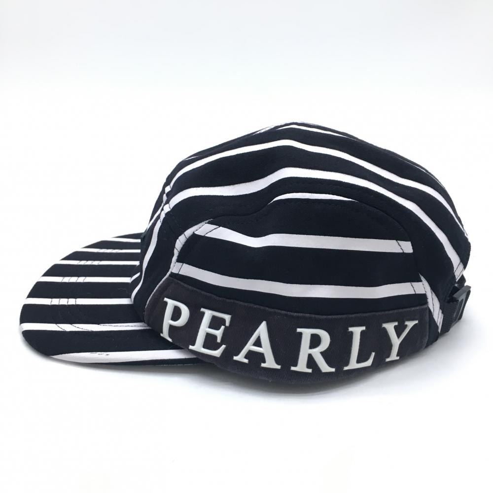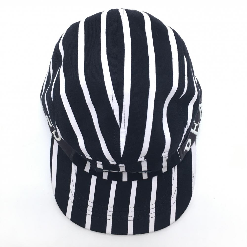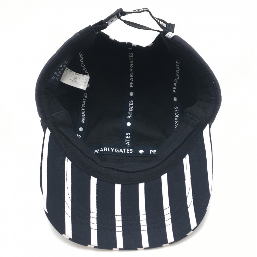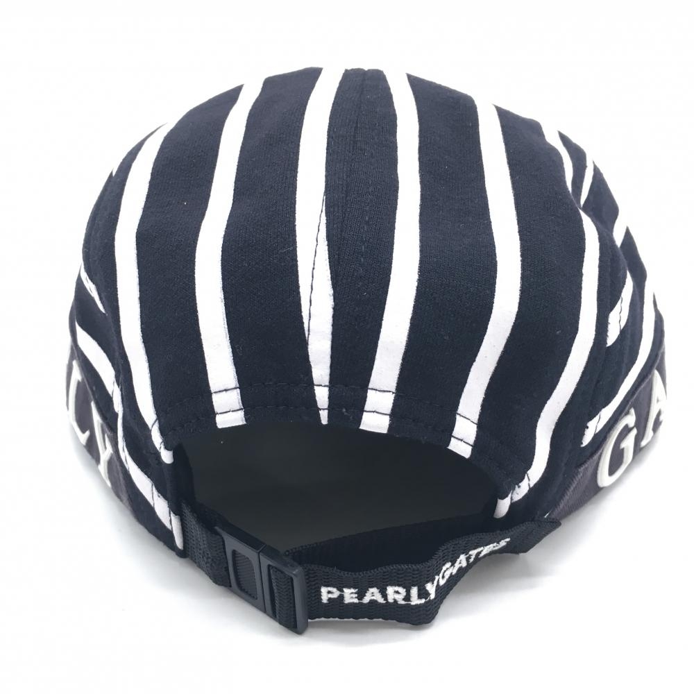 パーリーゲイツ フラットキャップ 黒×白 ストライプ 汗取りパッド付 FR ゴルフウェア PEARLY GATES