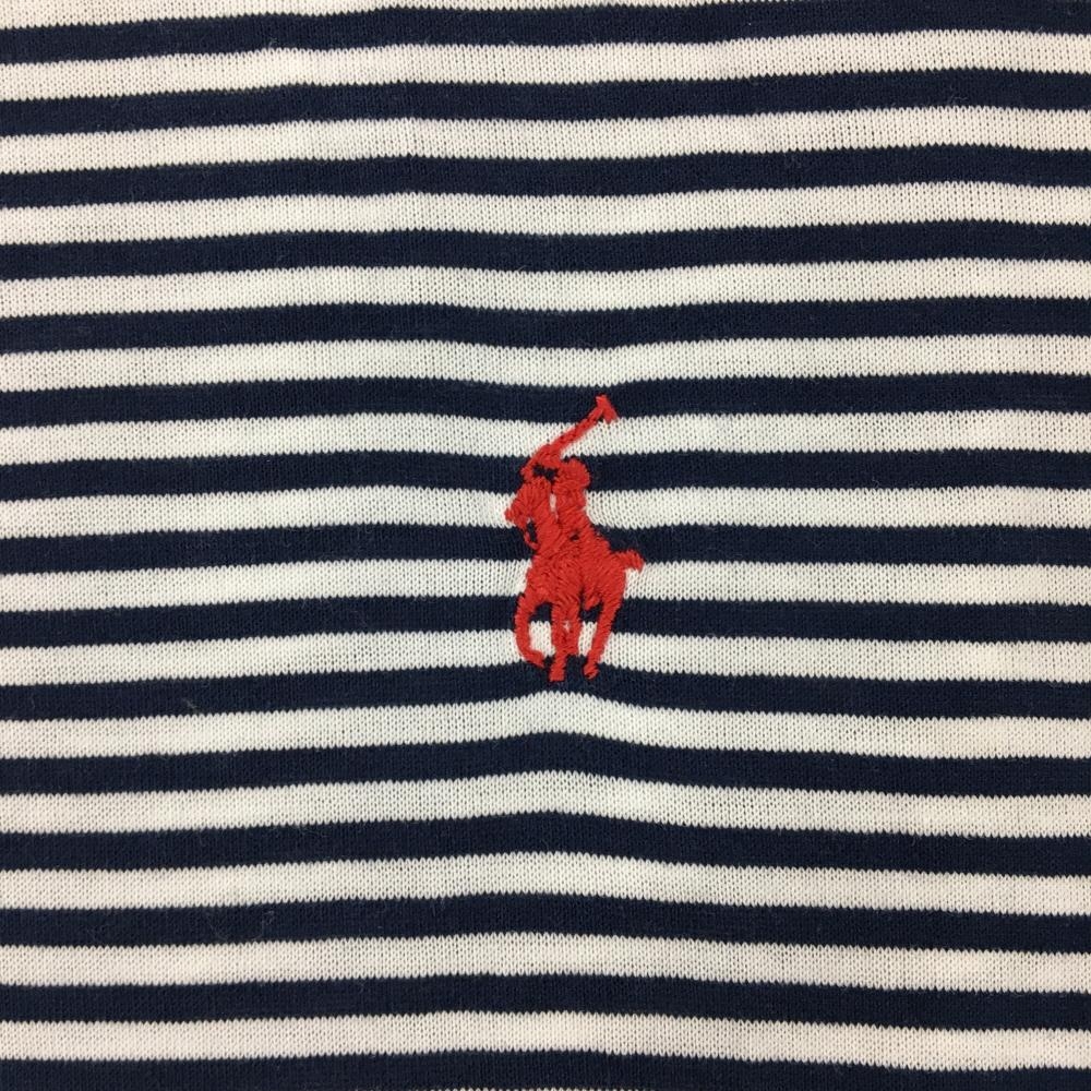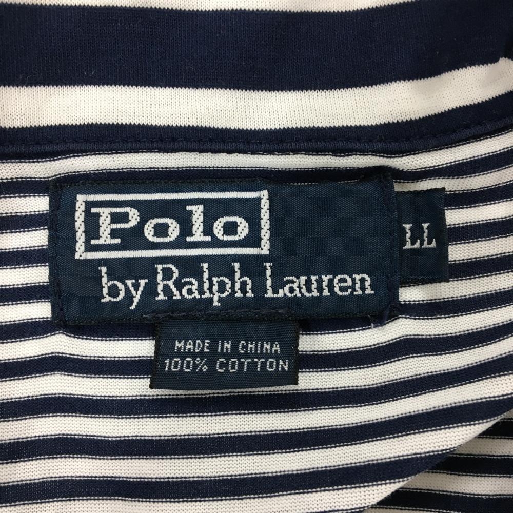 ポロラルフローレン 半袖ポロシャツ ネイビー×白 ボーダー柄 ロゴ刺しゅう メンズ LL ゴルフウェア Ralph Lauren
