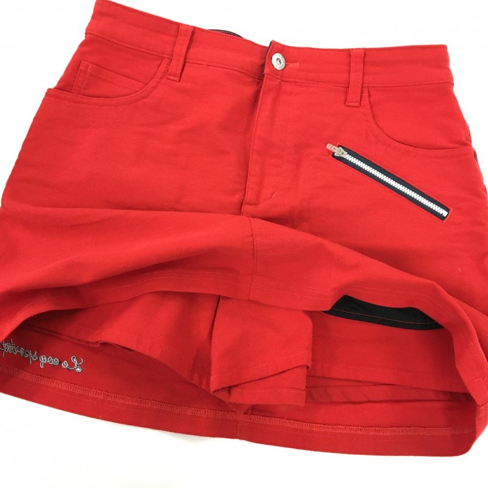 【美品】ルコックゴルフ スカート レッド×ネイビー ロゴ刺しゅう ストレッチ レディース 13 ゴルフウェア le coq sportif