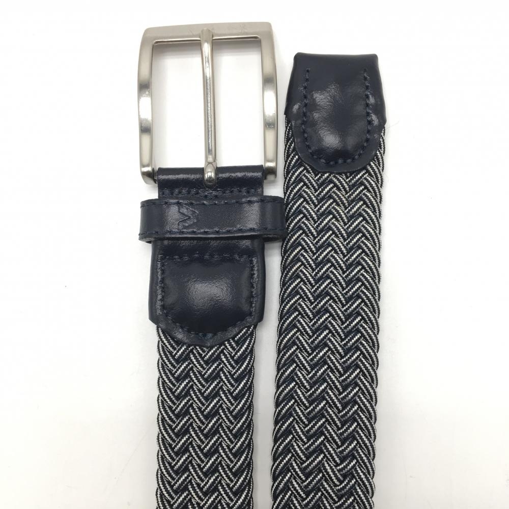 【超美品】アルベルト メッシュベルト ネイビー×白 シルバーバックル ゴム メンズ ゴルフウェア ALBERTO