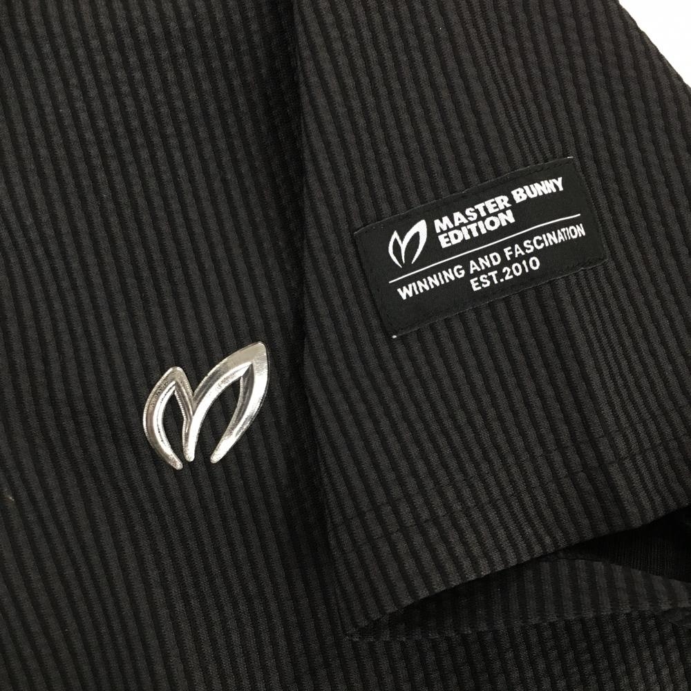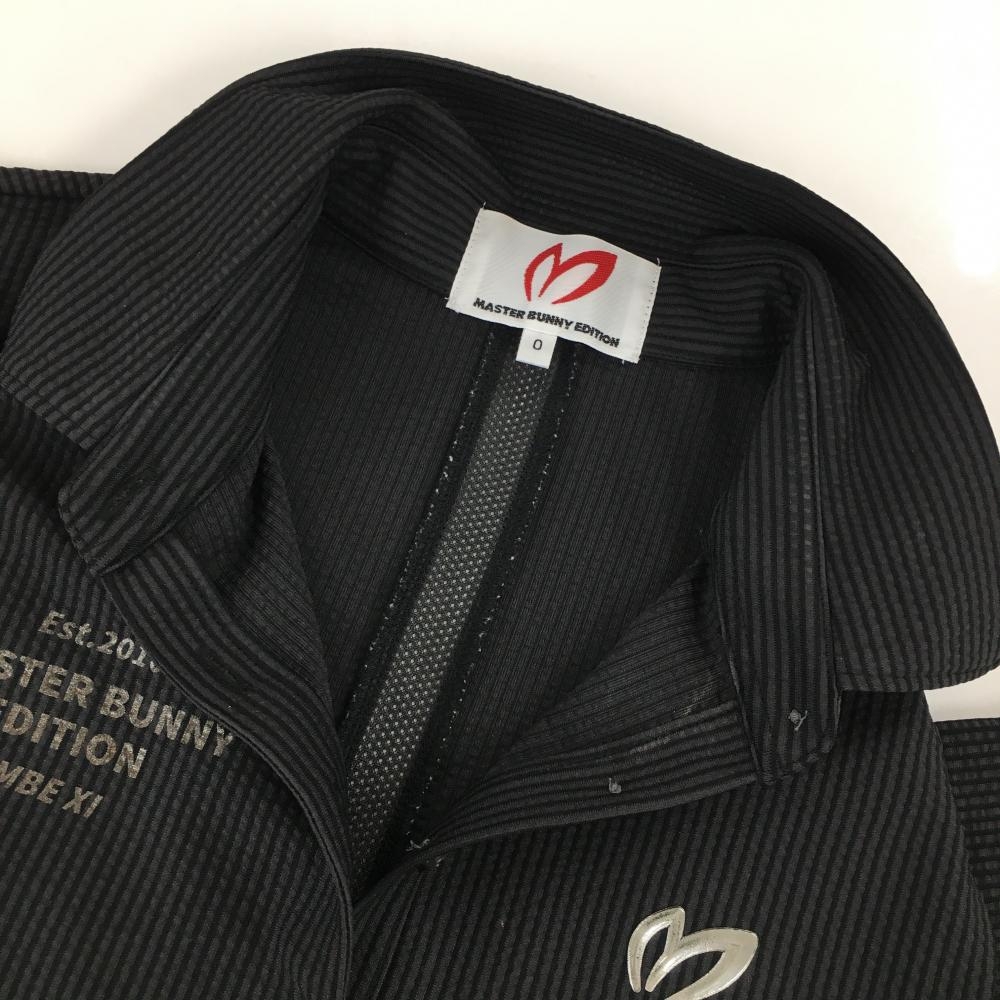 【美品】マスターバニー 半袖ポロシャツ ダークグレー×黒 ストライプ レディース 0(S) ゴルフウェア MASTER BUNNY EDITION