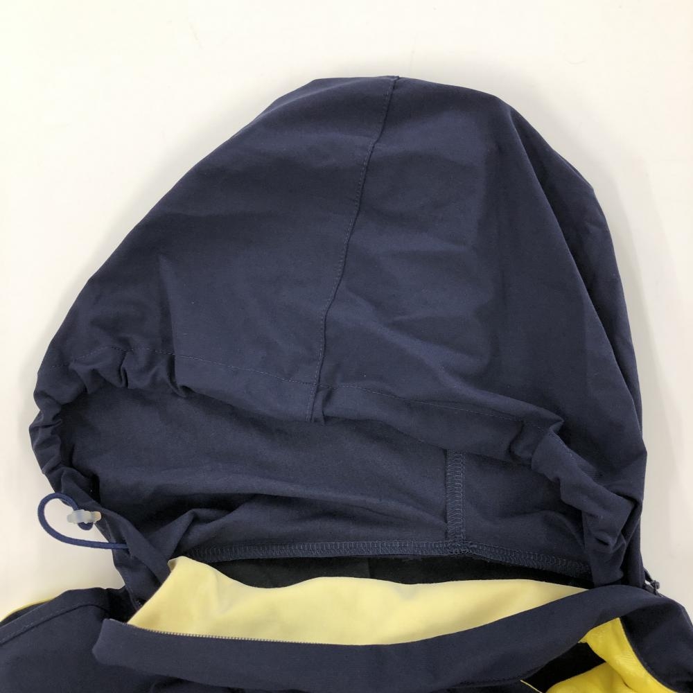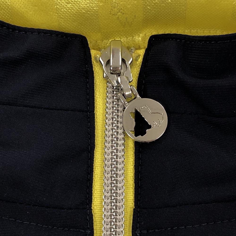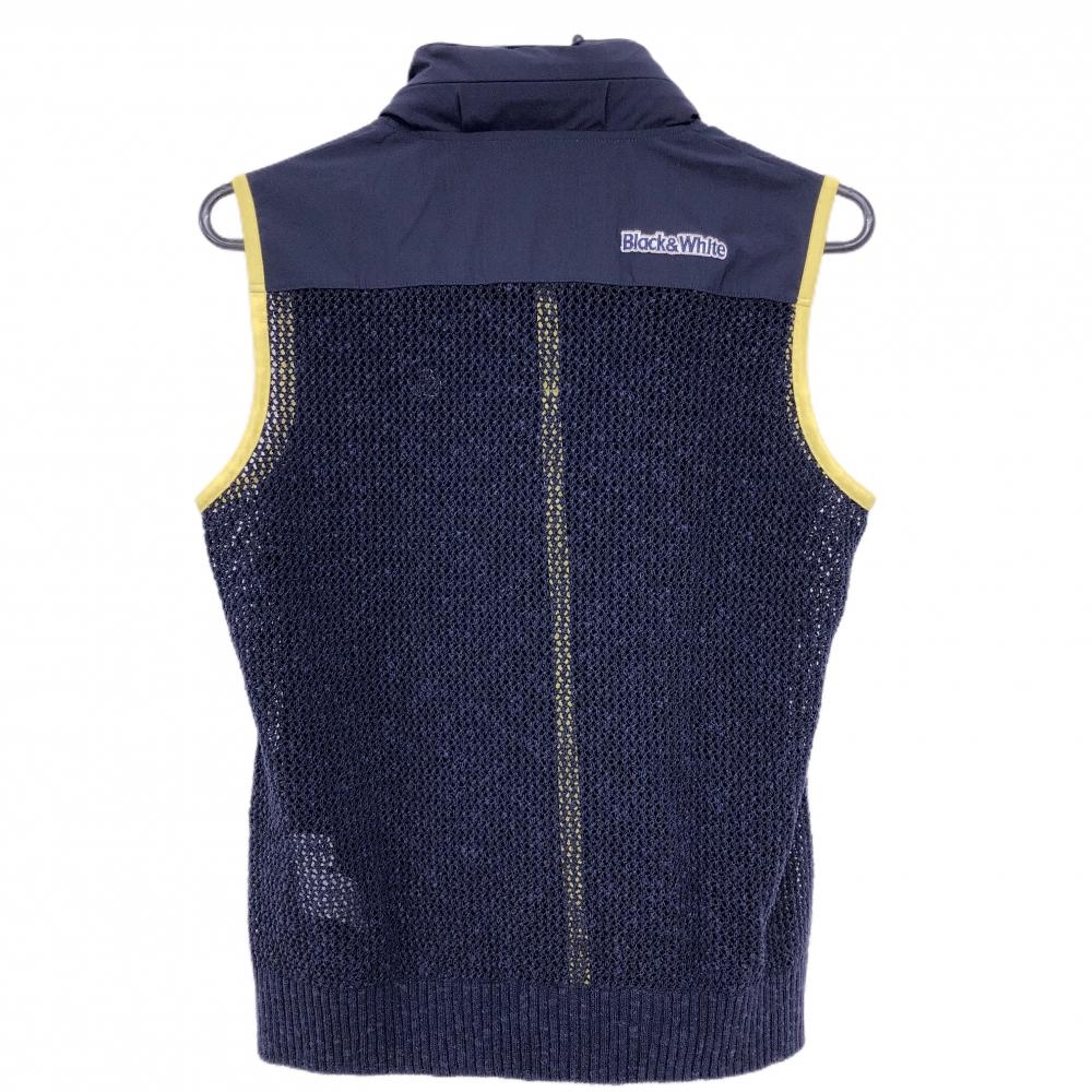 【超美品】ブラックアンドホワイト フード付きアウターベスト ネイビー×イエロー ロゴ刺しゅう レディース L ゴルフウェア Black&White