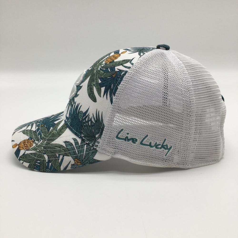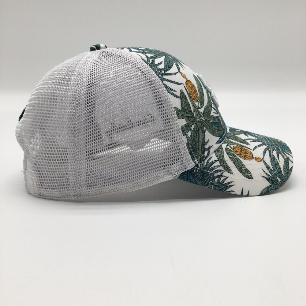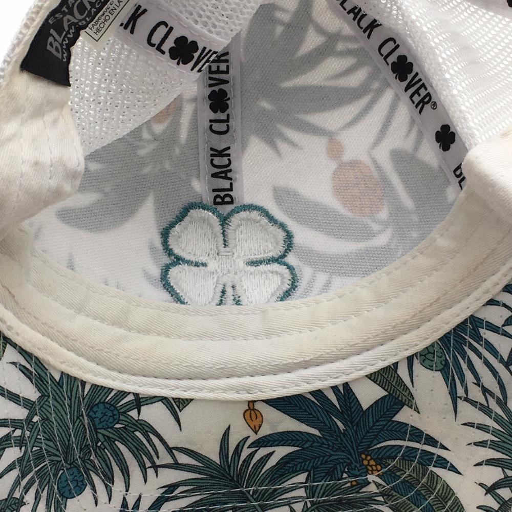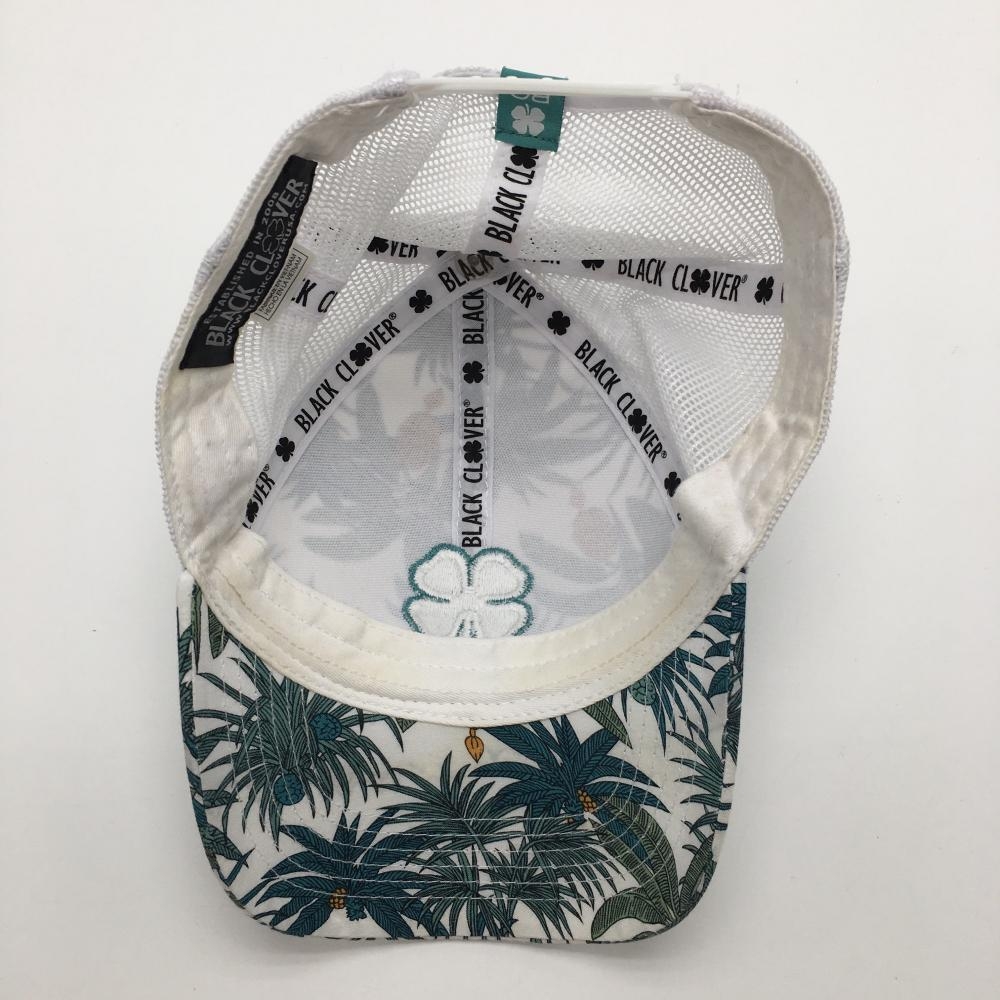 ブラッククローバー メッシュキャップ 白×グリーン系 リーフ柄 立体ロゴ刺しゅう ゴルフウェア BLACK CLOVER