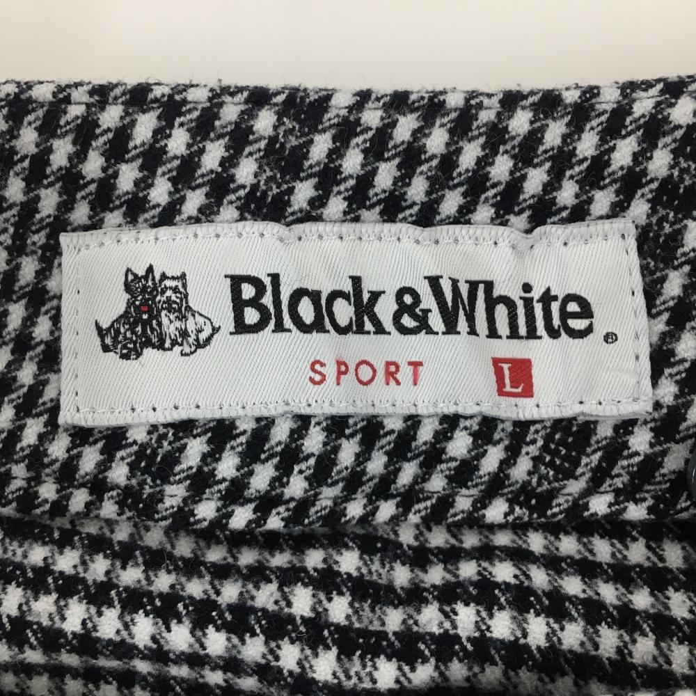 【超美品】ブラックアンドホワイト スカート 白×黒 チェック柄 一部プリーツ ロゴ刺しゅう レディース L ゴルフウェア Black&White