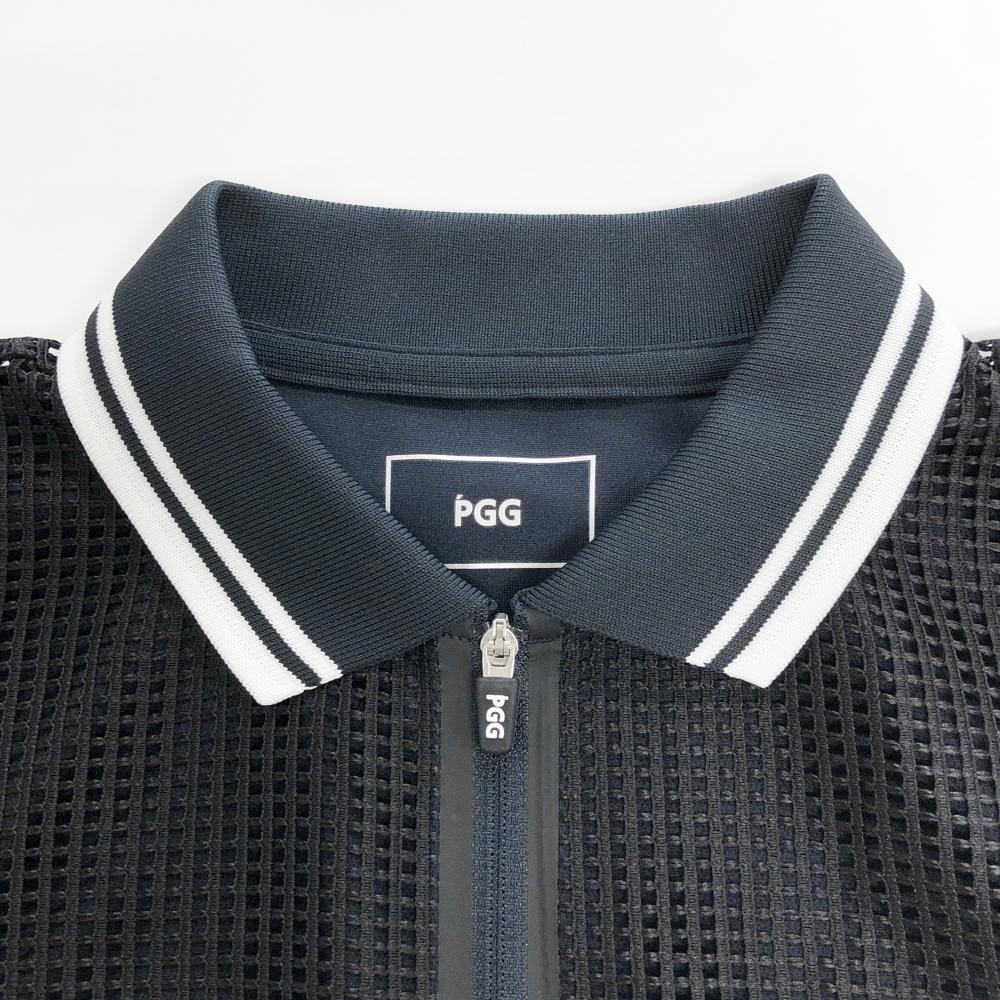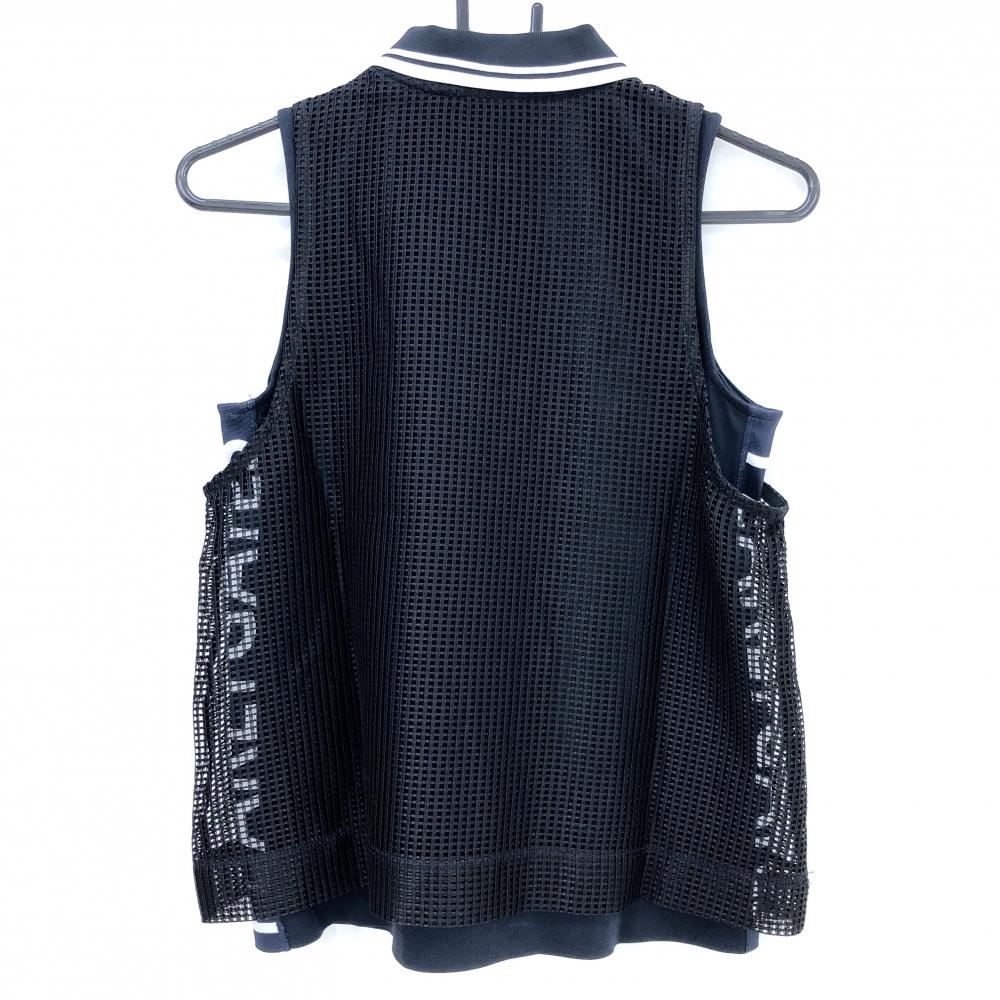 【超美品】PGGパーリーゲイツ ノースリーブポロシャツ 黒×白 格子レース サイドロゴ レディース 0(S) ゴルフウェア PEARLY GATES