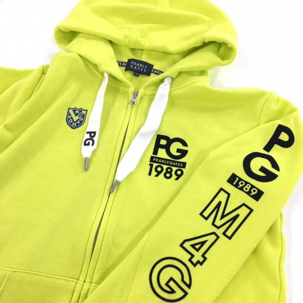 パーリーゲイツ ジップパーカー ライトグリーン×黒 袖ロゴ ジャケット レディース 1(M) ゴルフウェア PEARLY GATES