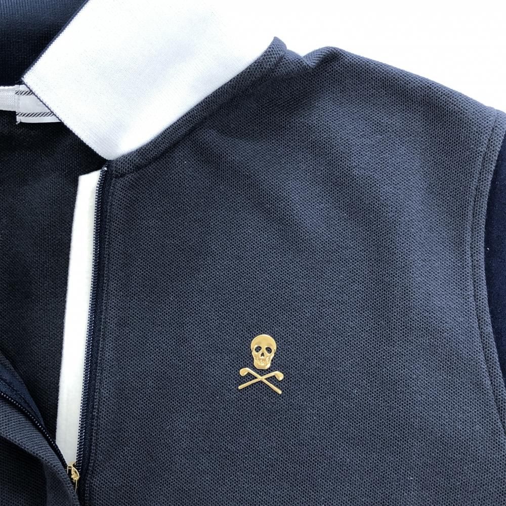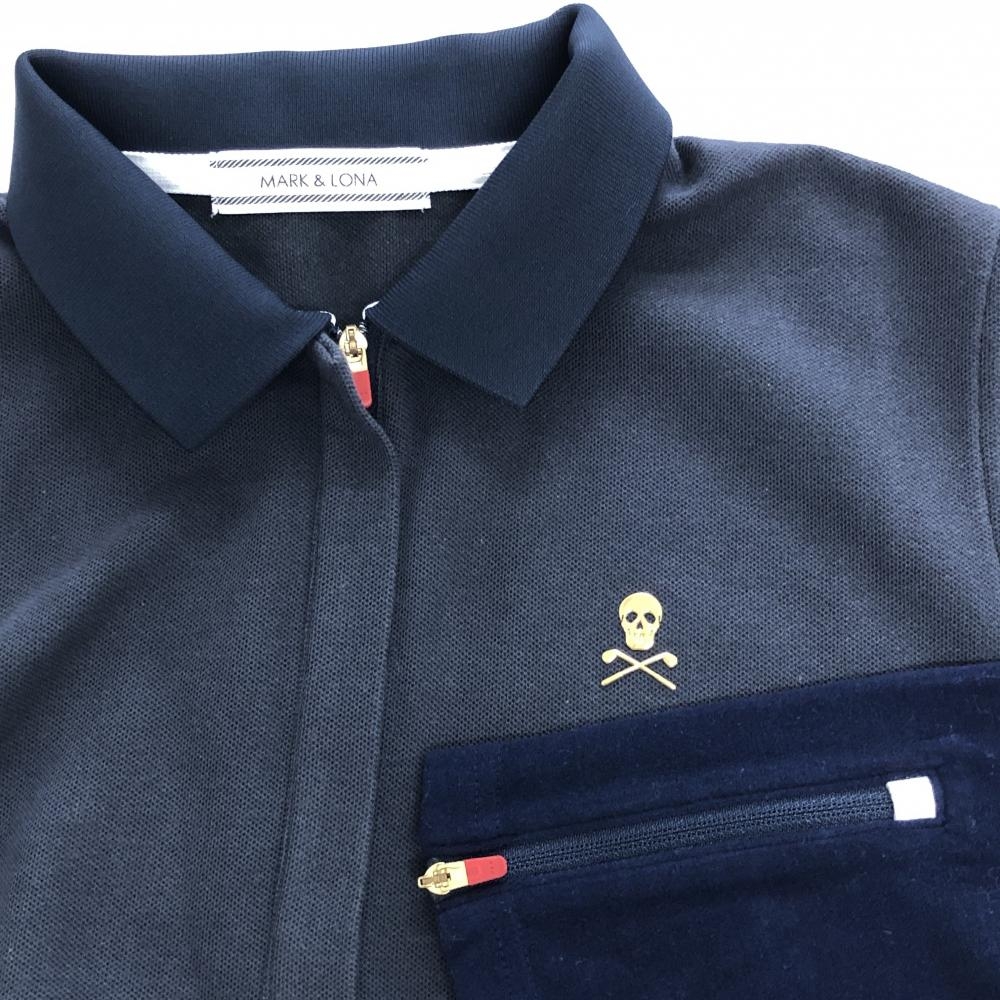 マークアンドロナ 異素材長袖ポロシャツ ネイビー スカル 袖微起毛 レディース L ゴルフウェア MARK&LONA