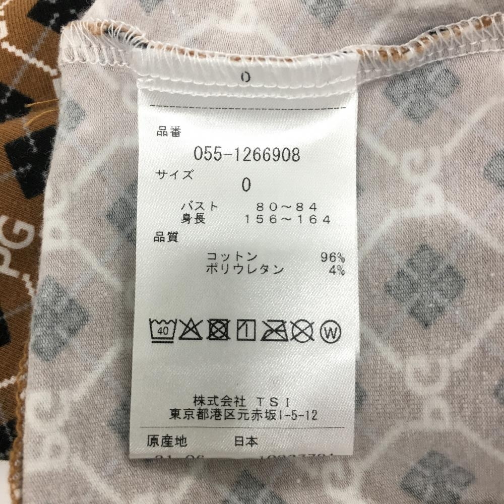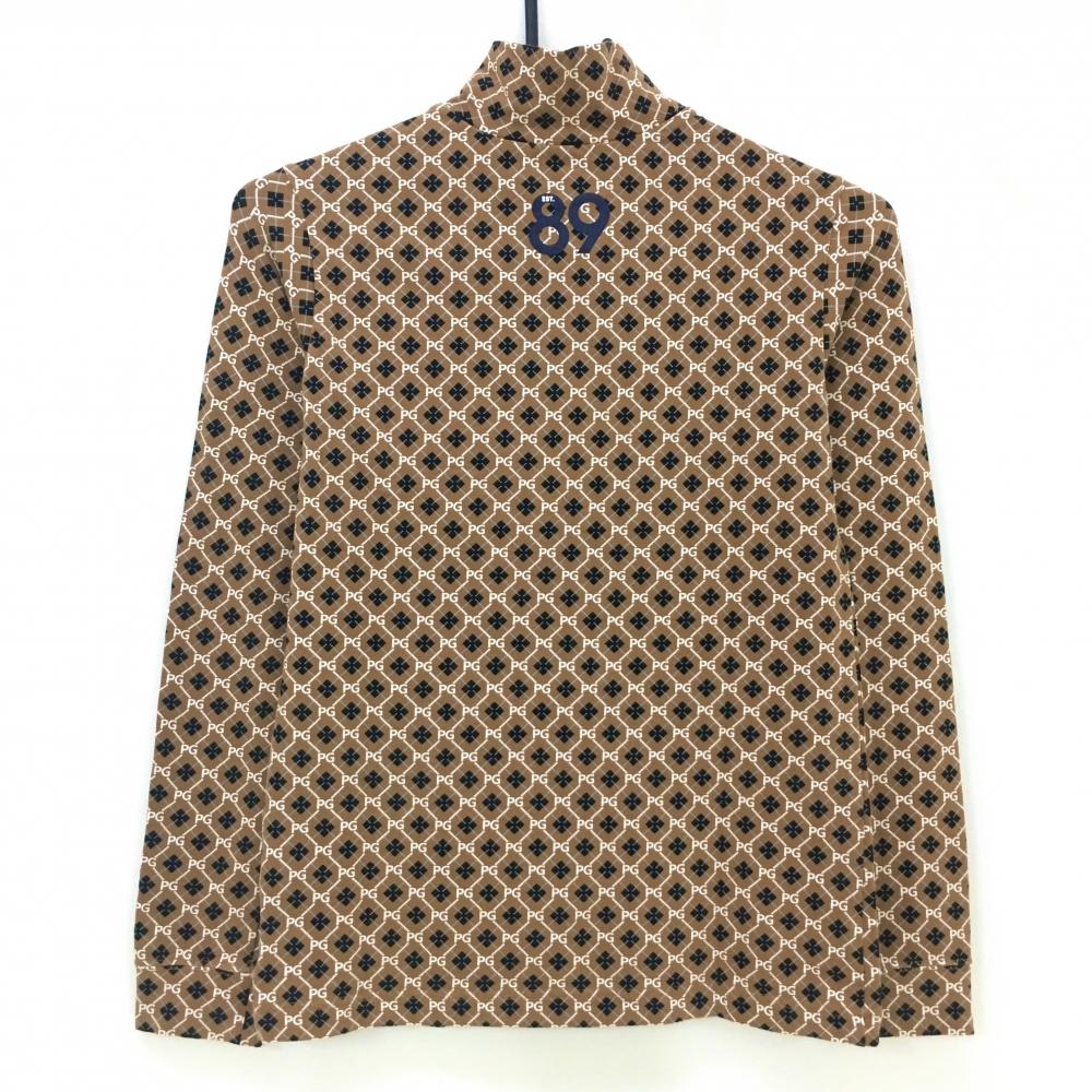 【超美品】パーリーゲイツ 長袖ハイネックシャツ ブラウン×白×黒 総柄 ロゴ レディース 0(S) ゴルフウェア PEARLY GATES