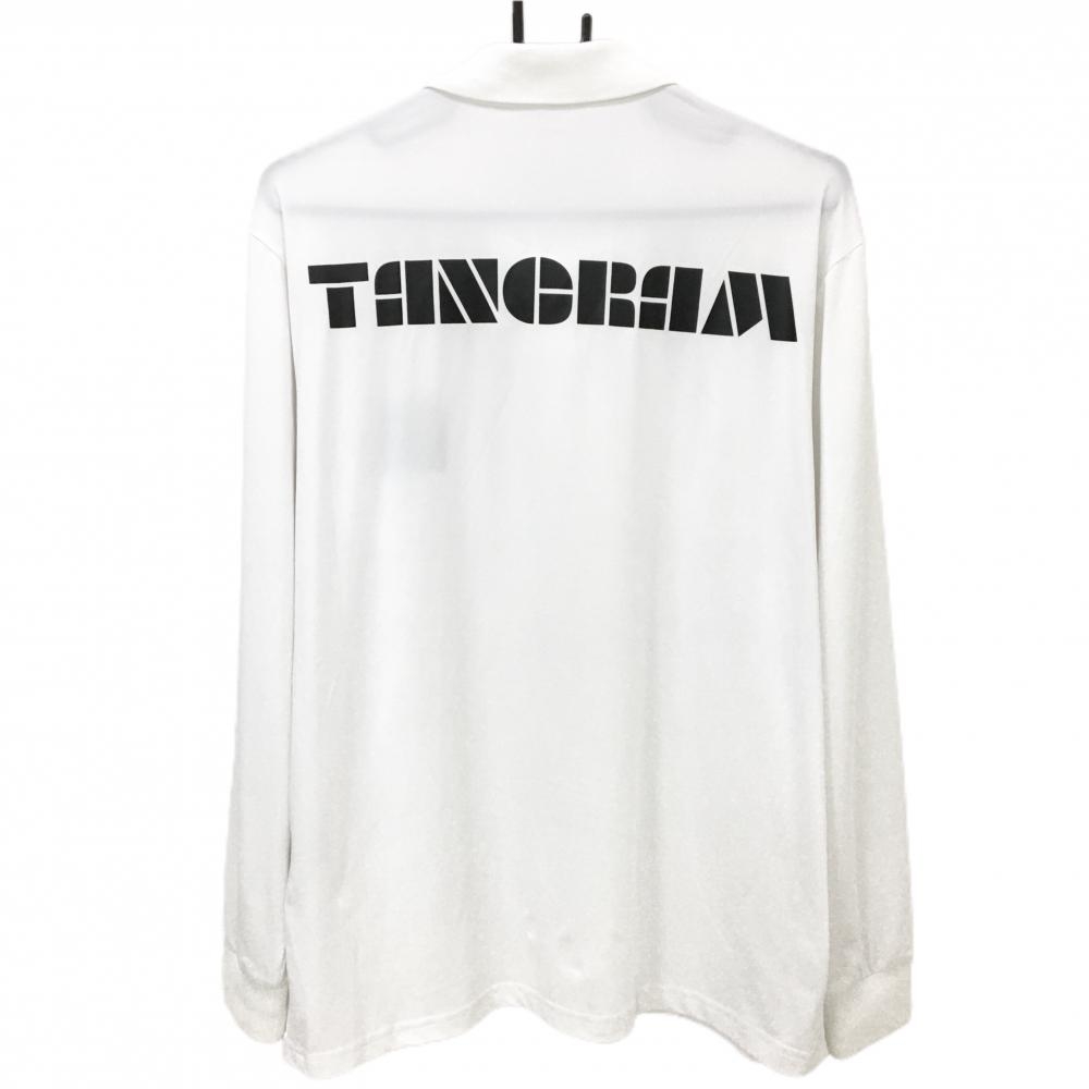 【美品】タングラム 長袖ポロシャツ 白 背面ロゴ スナップボタン メンズ S ゴルフウェア TANGRAM