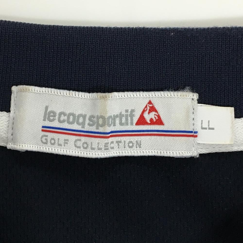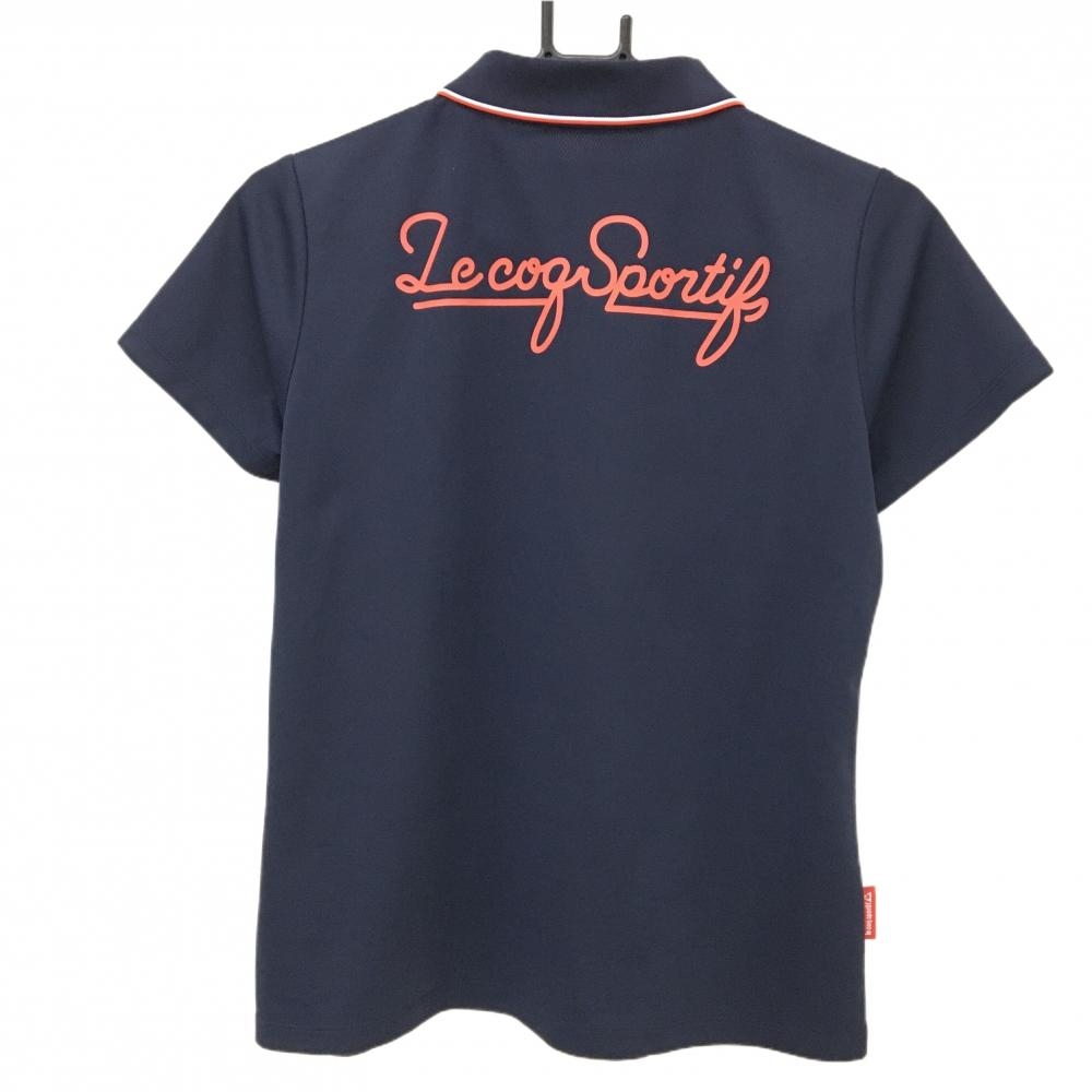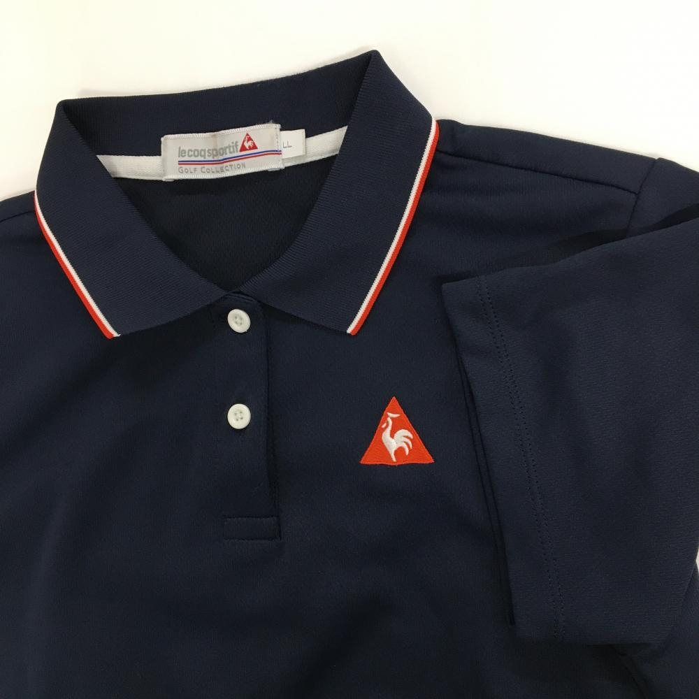 【美品】ルコックゴルフ 半袖ポロシャツ ネイビー ロゴ刺しゅう 襟縁ライン レディース LL ゴルフウェア le coq sportif