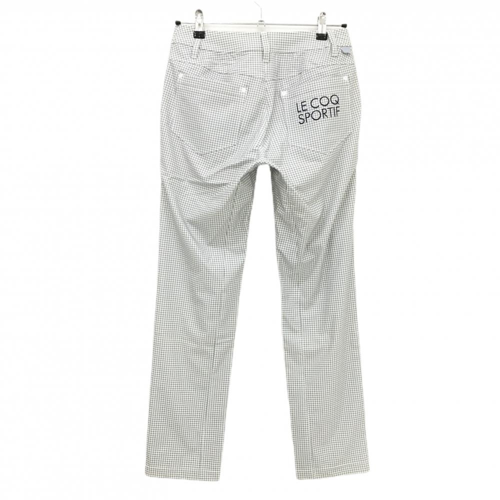 【超美品】ルコックゴルフ パンツ 白×グレー ギンガムチェック ストレッチ レディース 9 ゴルフウェア le coq sportif