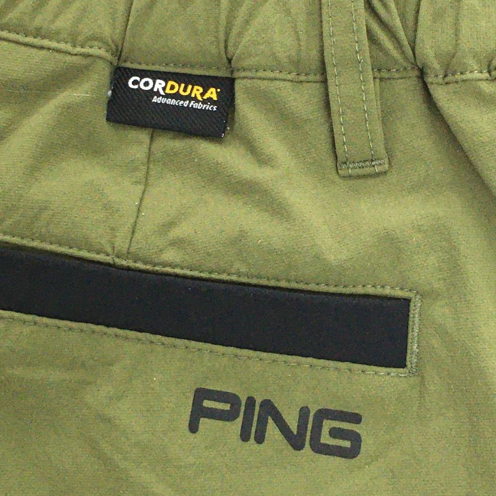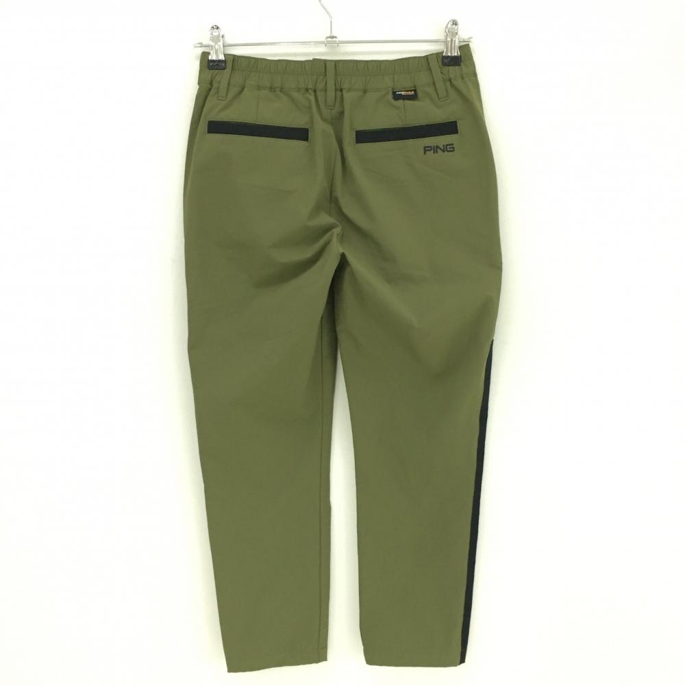 【超美品】ピン パンツ カーキ×黒 裾サイドライン ストレッチ ナイロン混 レディース S ゴルフウェア PING