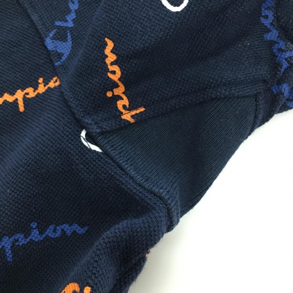 チャンピオン 半袖ポロシャツ ダークネイビー ロゴ総柄 ビックワッペン レディース MEDIUM ゴルフウェア Champion