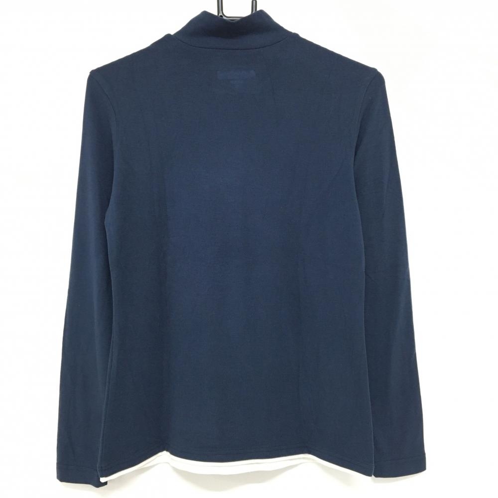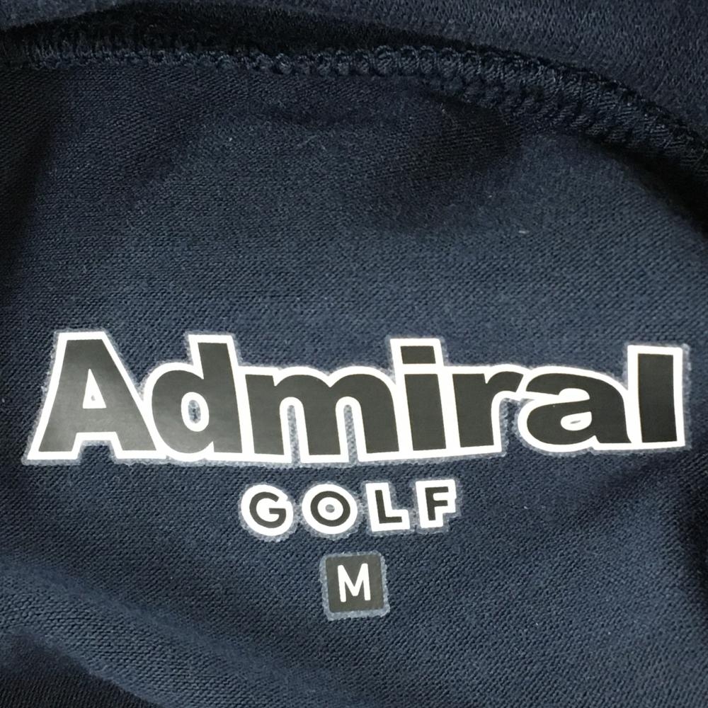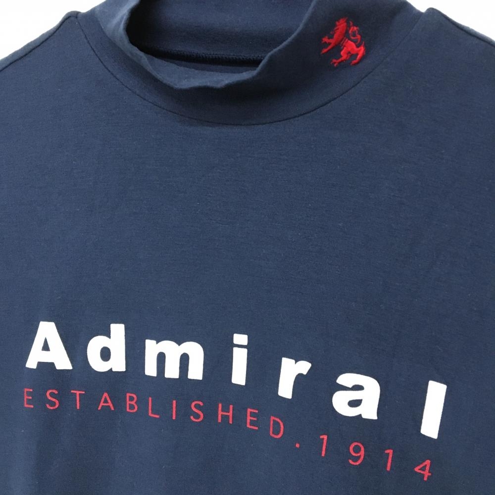 【美品】アドミラル 長袖ハイネックシャツ ネイビー×白×レッド フロントロゴプリント レディース M ゴルフウェア Admiral