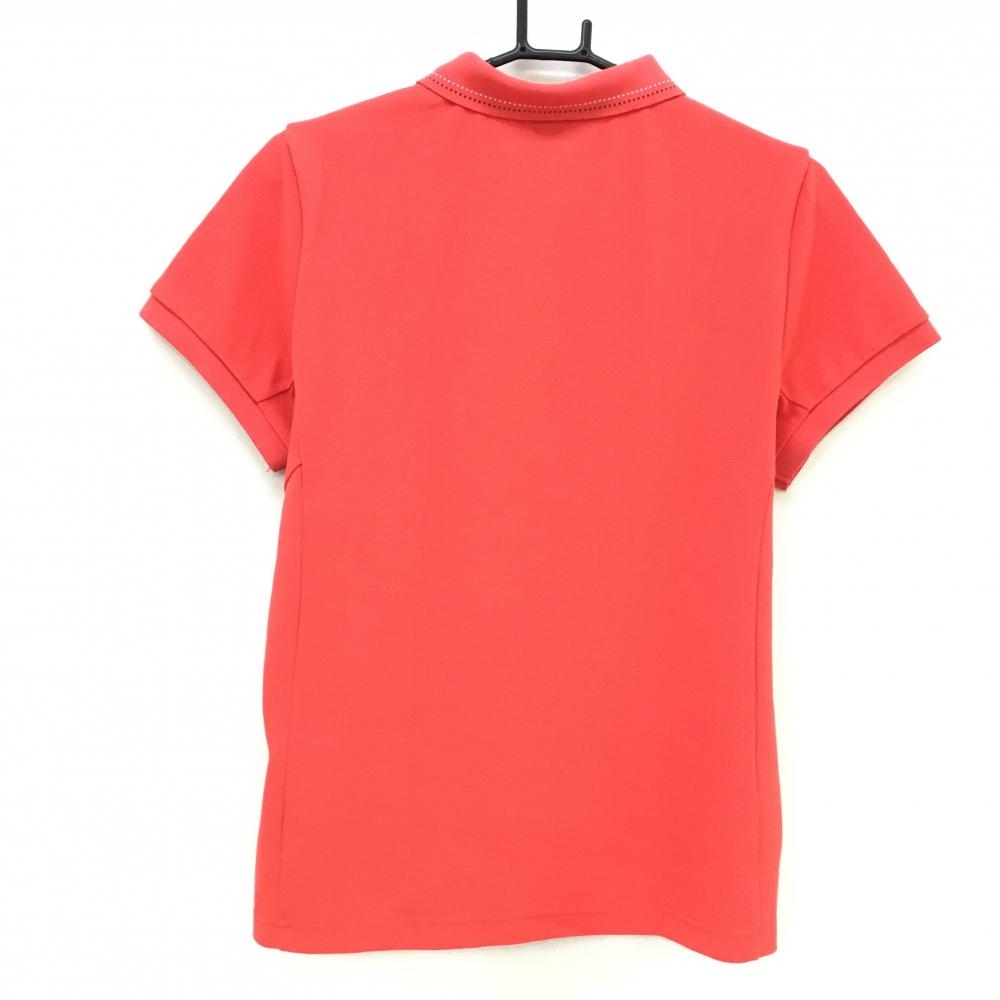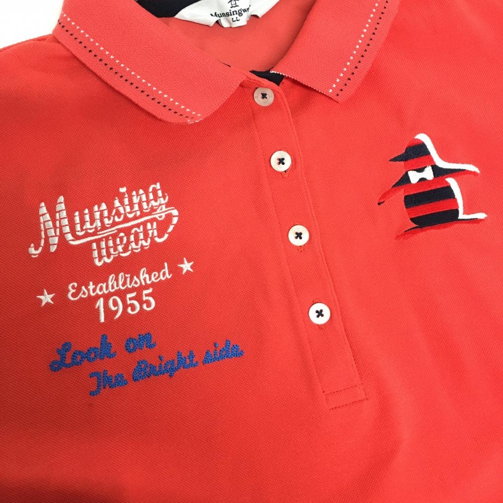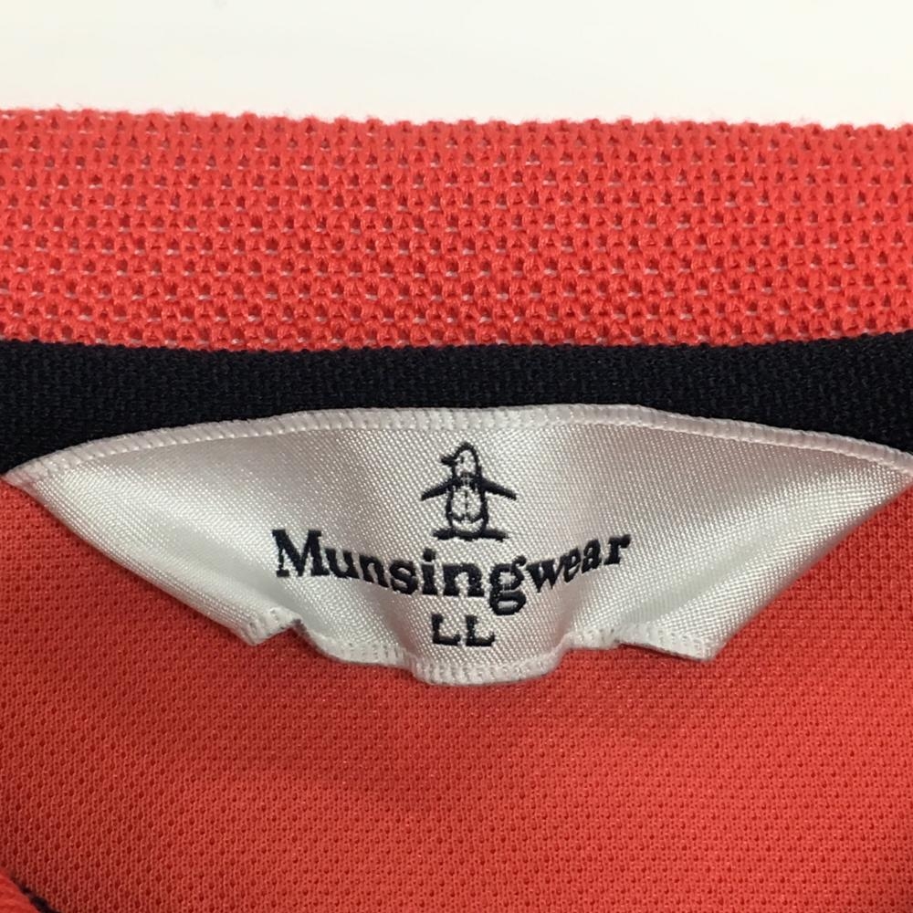 【美品】マンシングウェア 半袖ポロシャツ レッド系 ロゴ刺しゅう 襟ステッチ風 レディース LL ゴルフウェア Munsingwear