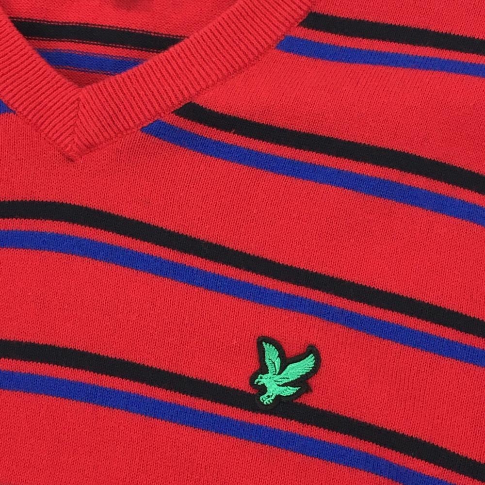 【超美品】ライルアンドスコット セーター レッド×ブルー ボーダー コットン100% Vネック ニット メンズ S ゴルフウェア LYLE&SCOTT