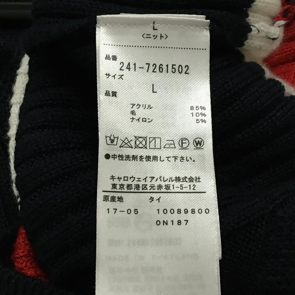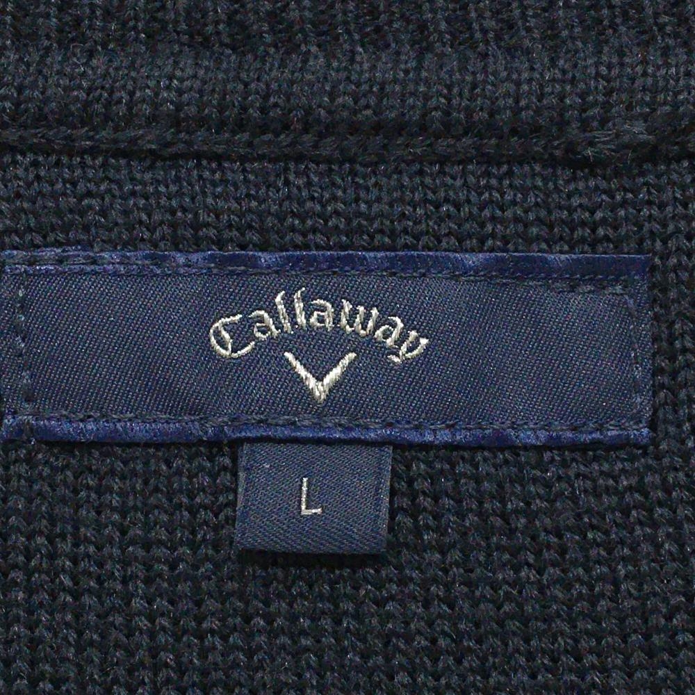 【美品】キャロウェイ ニットベスト ネイビー×レッド 裾ライン ケーブル編み メンズ L ゴルフウェア Callaway