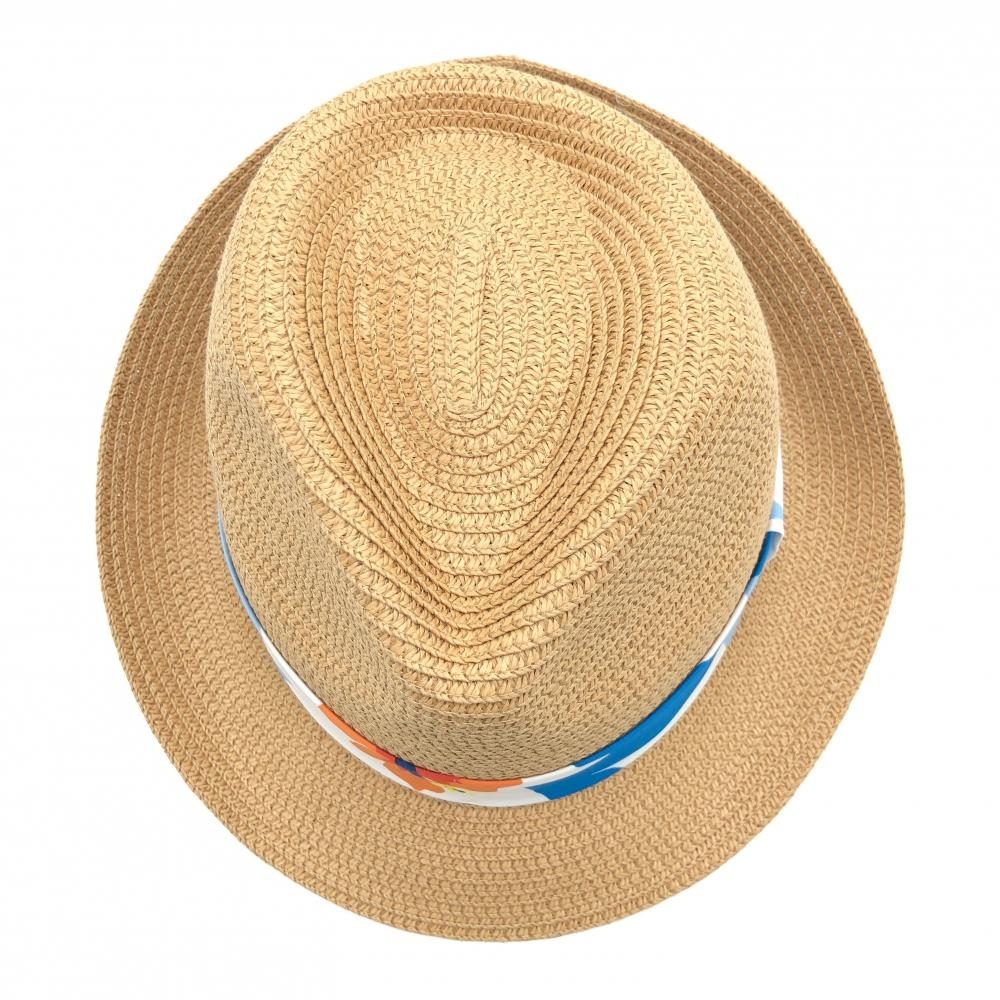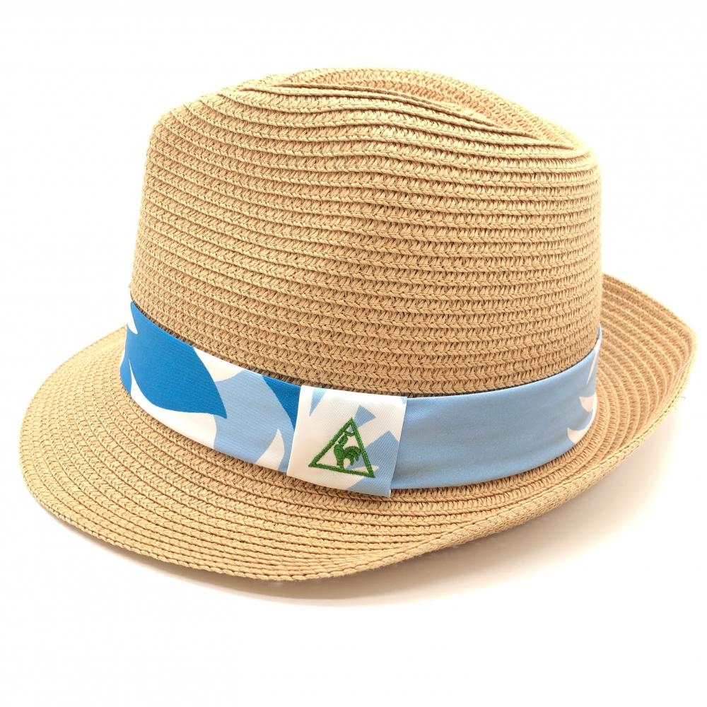 【超美品】ルコック 中折れハット ベージュ×ブルー 麦わら帽子 F(55-57cm) ゴルフウェア le coq sportif