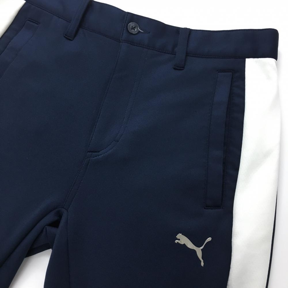 【超美品】プーマ ジョガーパンツ ネイビー×白 DRYCELL ウエスト一部ゴム ストレッチ メンズ S ゴルフウェア PUMA