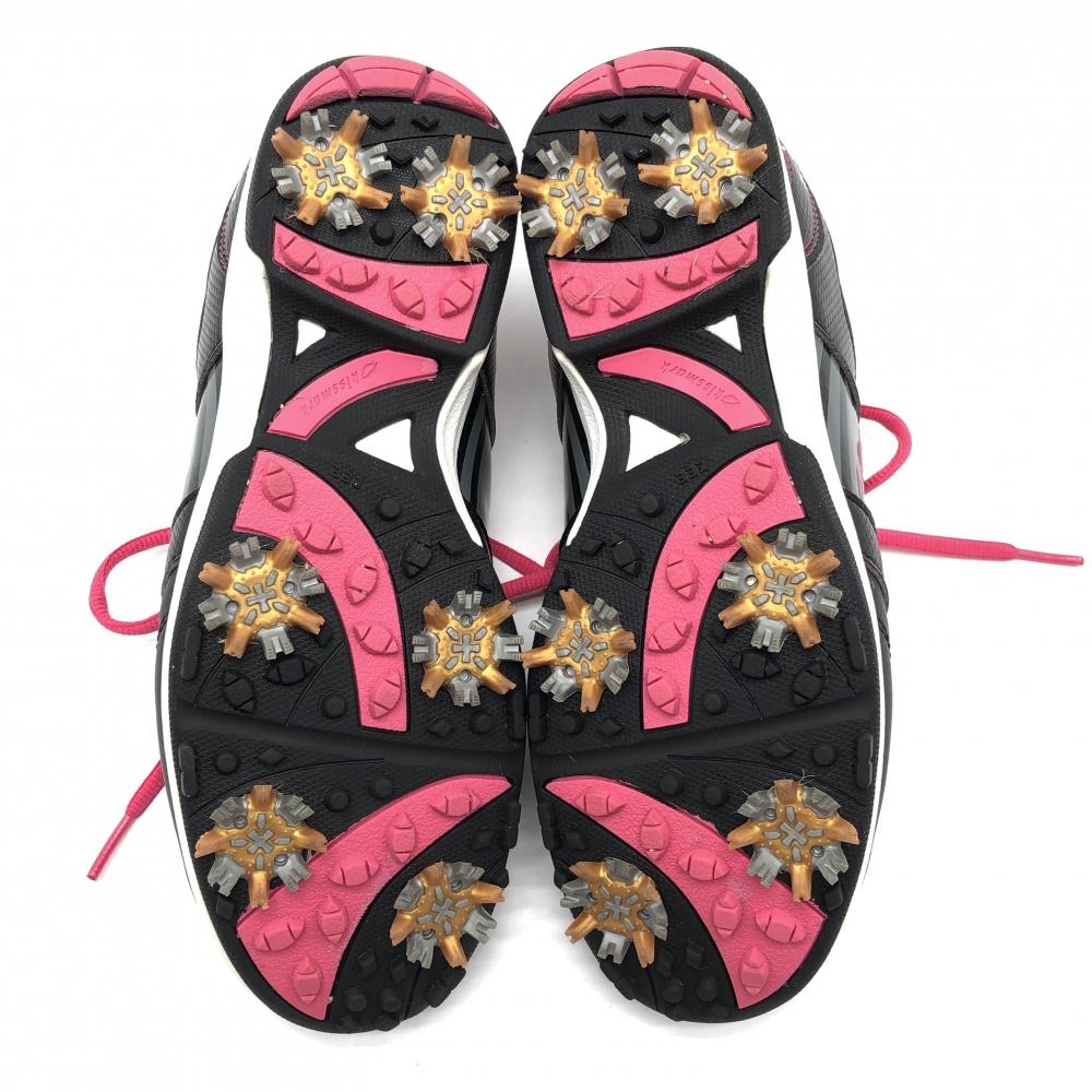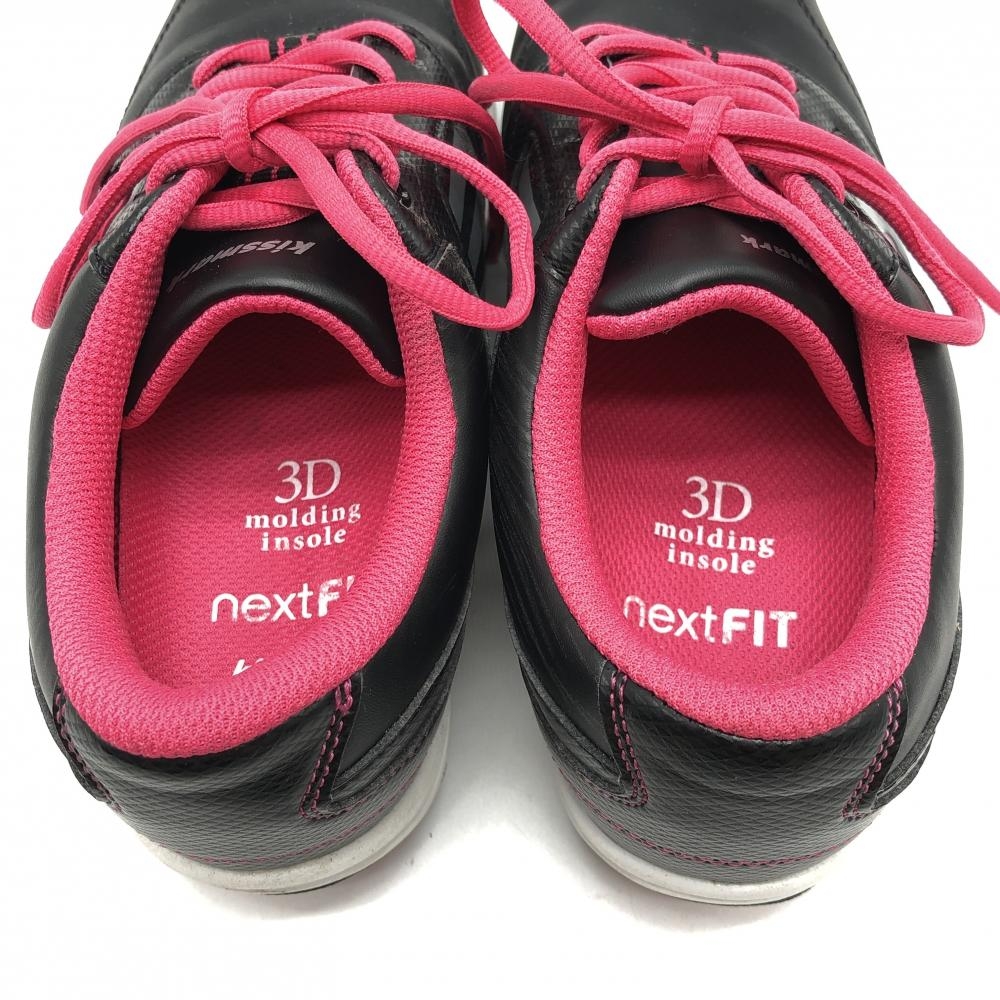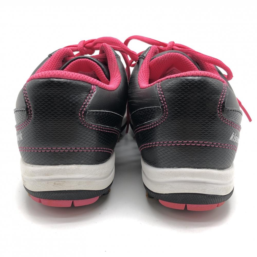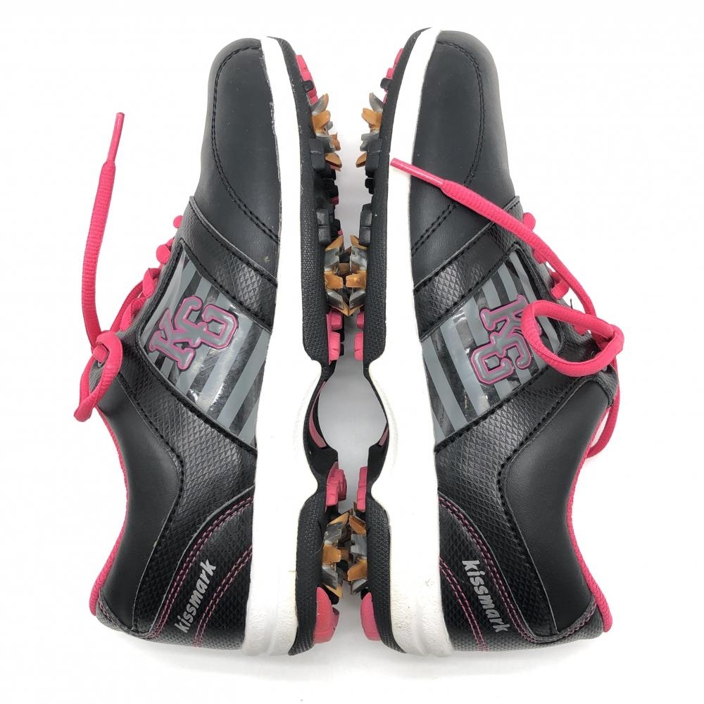 【美品】キスマーク ゴルフシューズ 黒×ピンク KM-0S218 レディース 22.5 ゴルフウェア KISS MARK