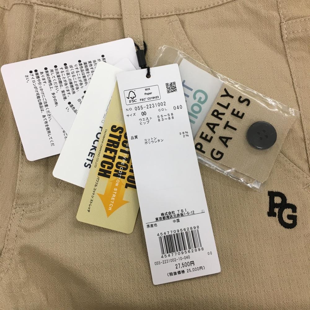 【新品】パーリーゲイツ パンツ ベージュ 地模様 コットン混 レディース 00(XS) ゴルフウェア PEARLY GATES