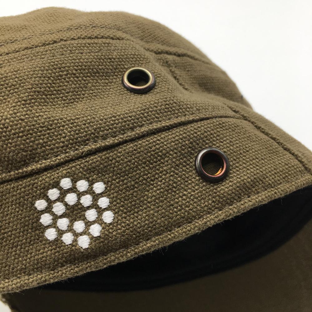 【美品】アディダス ワークキャップ カーキ つばスタッズ ロゴ黒 ONE SIZE(56-59cm) ゴルフウェア adidas