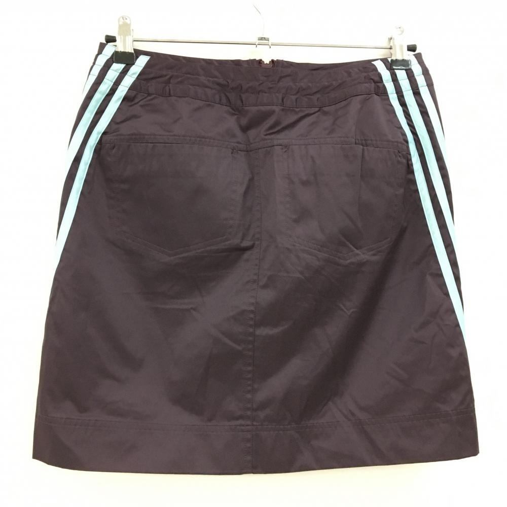 【美品】アディダス スカート パープルブラウン×ライトブルー サイド3ライン ドローコード レディース M ゴルフウェア adidas