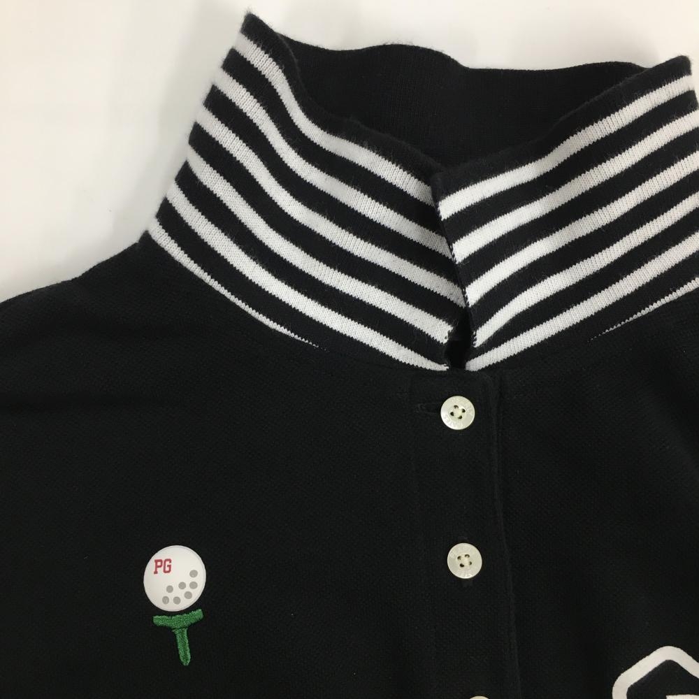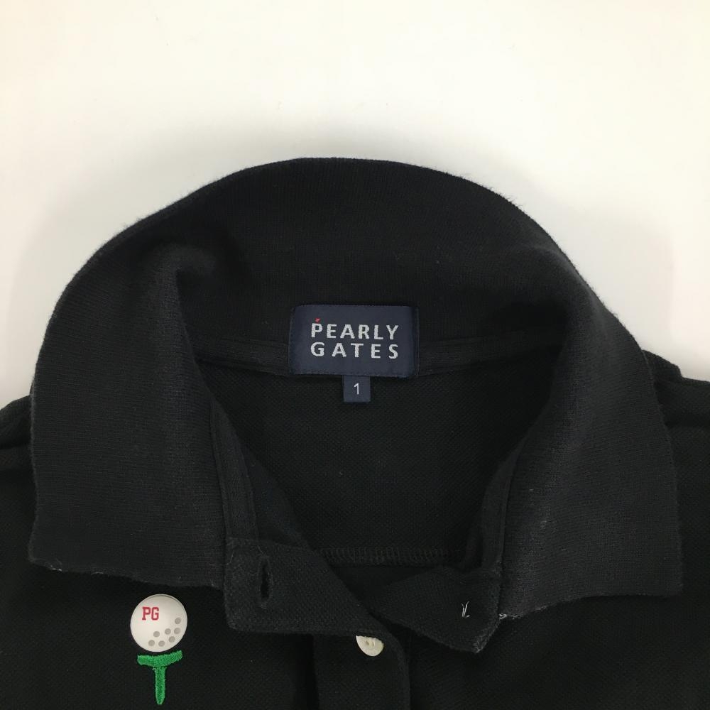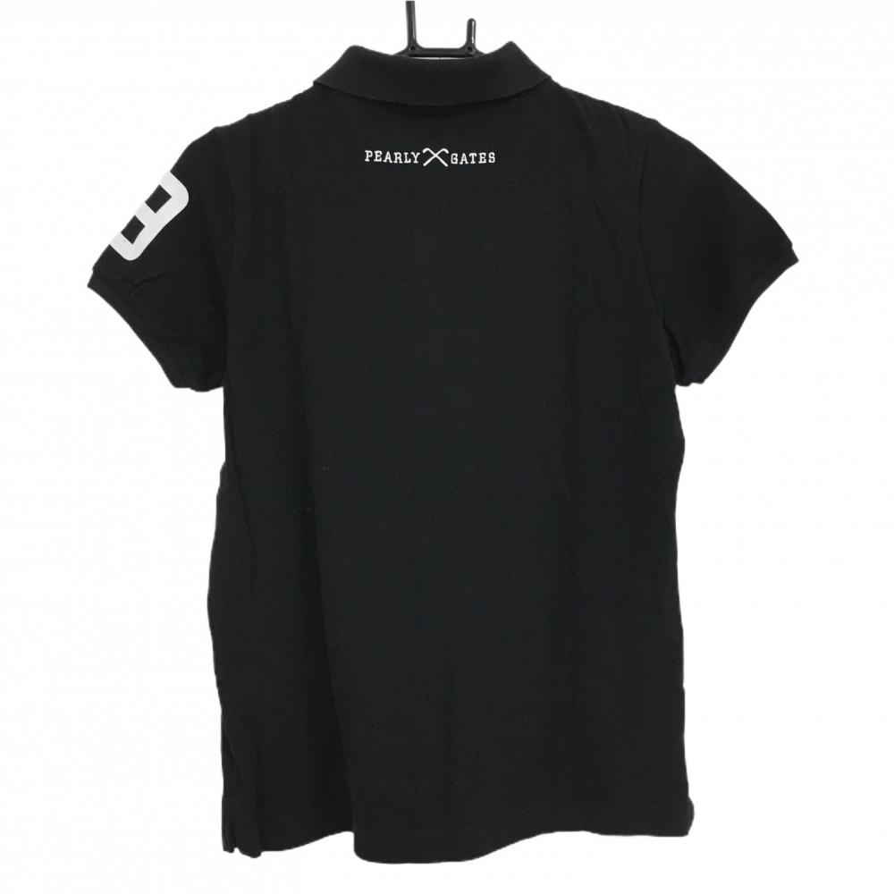 パーリーゲイツ 半袖ポロシャツ 黒 襟裏ボーダー フロッキープリント レディース 1(M) ゴルフウェア PEARLY GATES