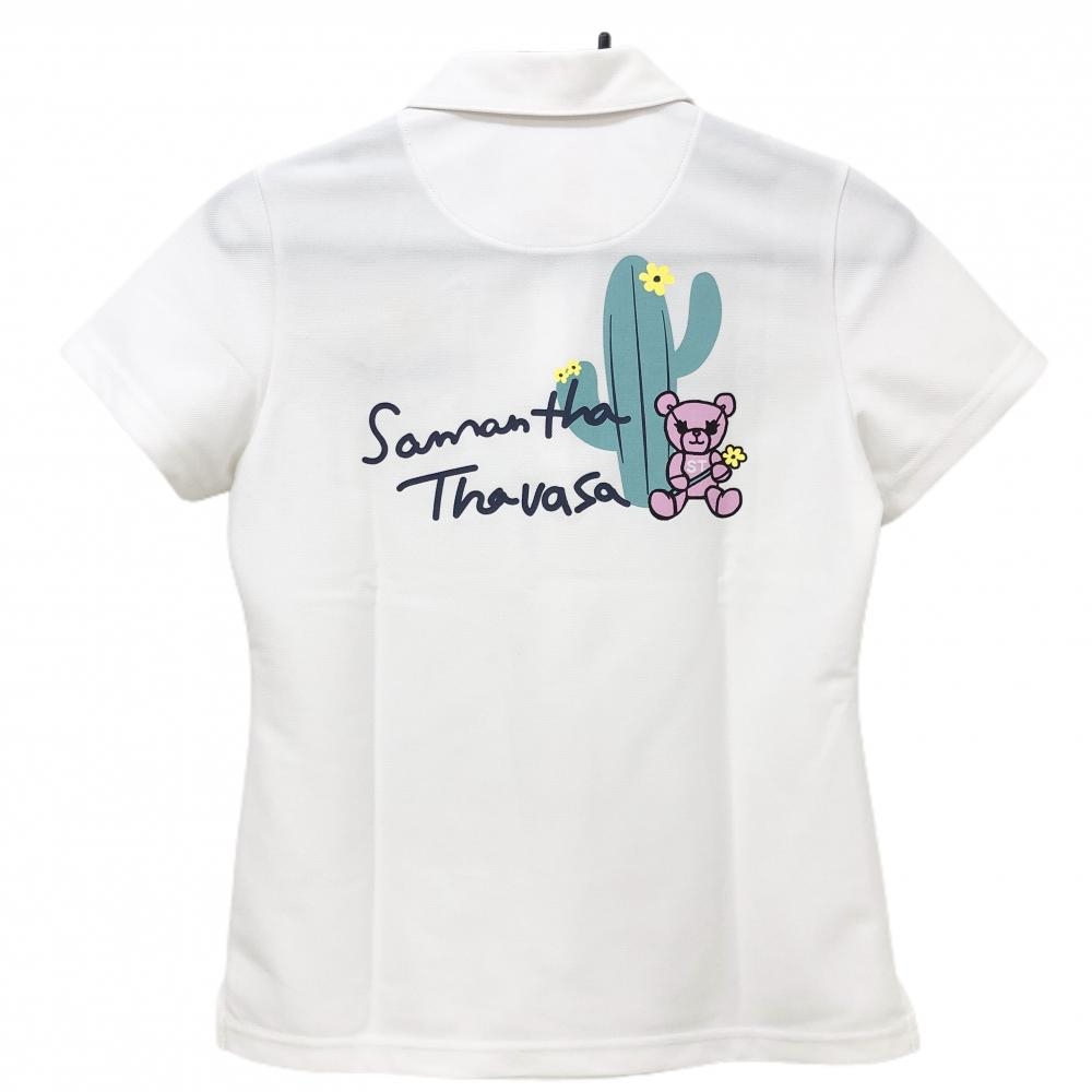 サマンサタバサUNDER25 半袖ポロシャツ 白 背面プリント ベア サボテン レディース S ゴルフウェア Samantha Thavasa
