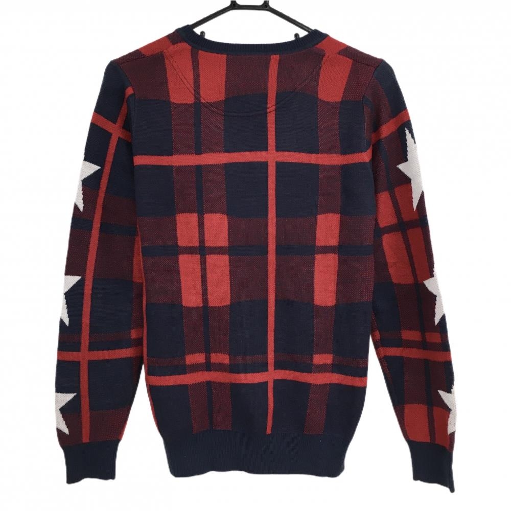 キャロウェイ セーター ネイビー×レッド 格子柄 袖星 ベアワッペン ニット レディース M ゴルフウェア Callaway