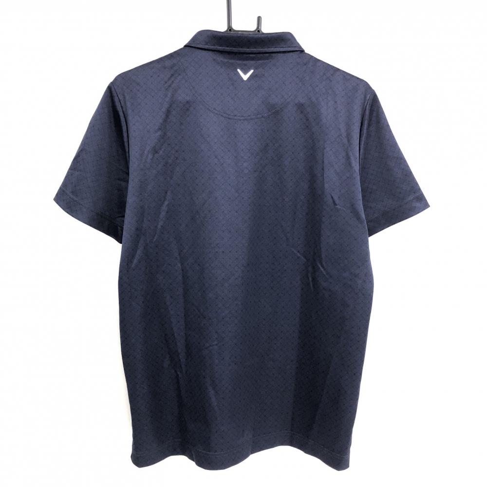 【美品】キャロウェイ 半袖ポロシャツ ネイビー 斜め格子 ロゴ白 メンズ L ゴルフウェア Callaway