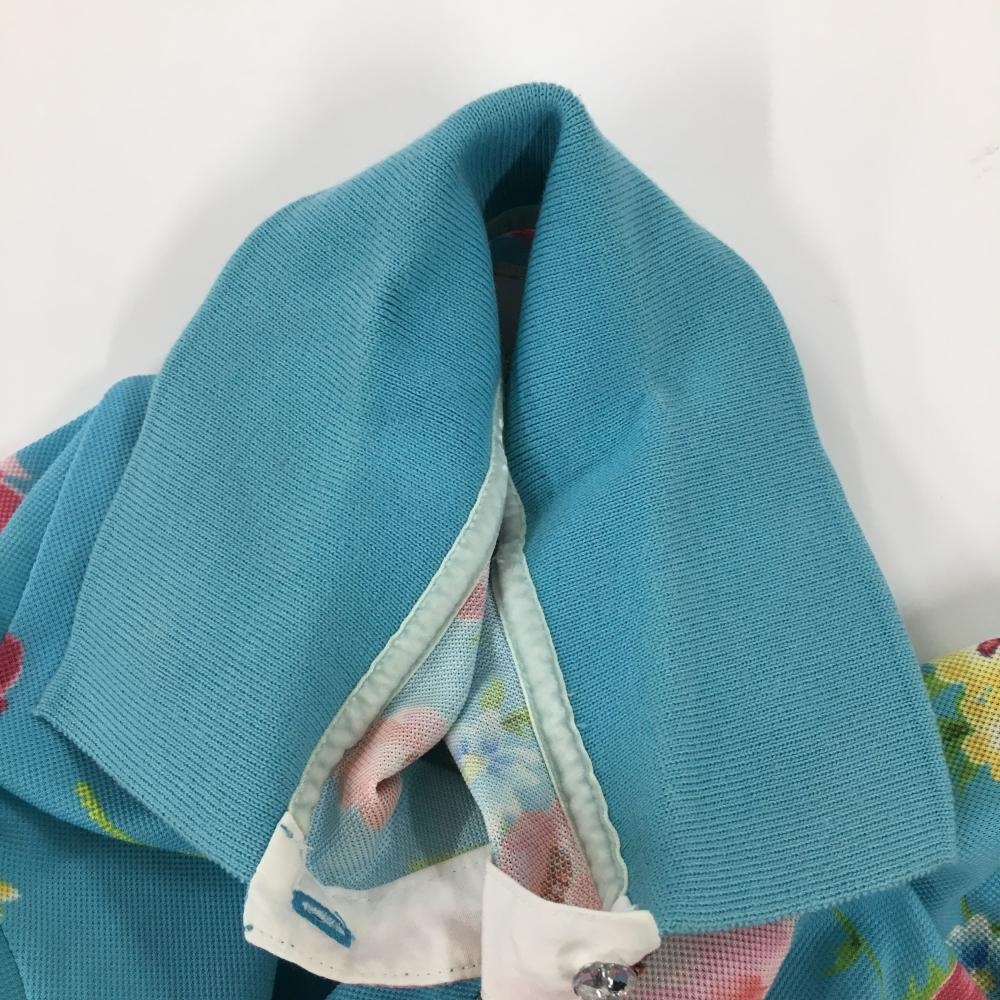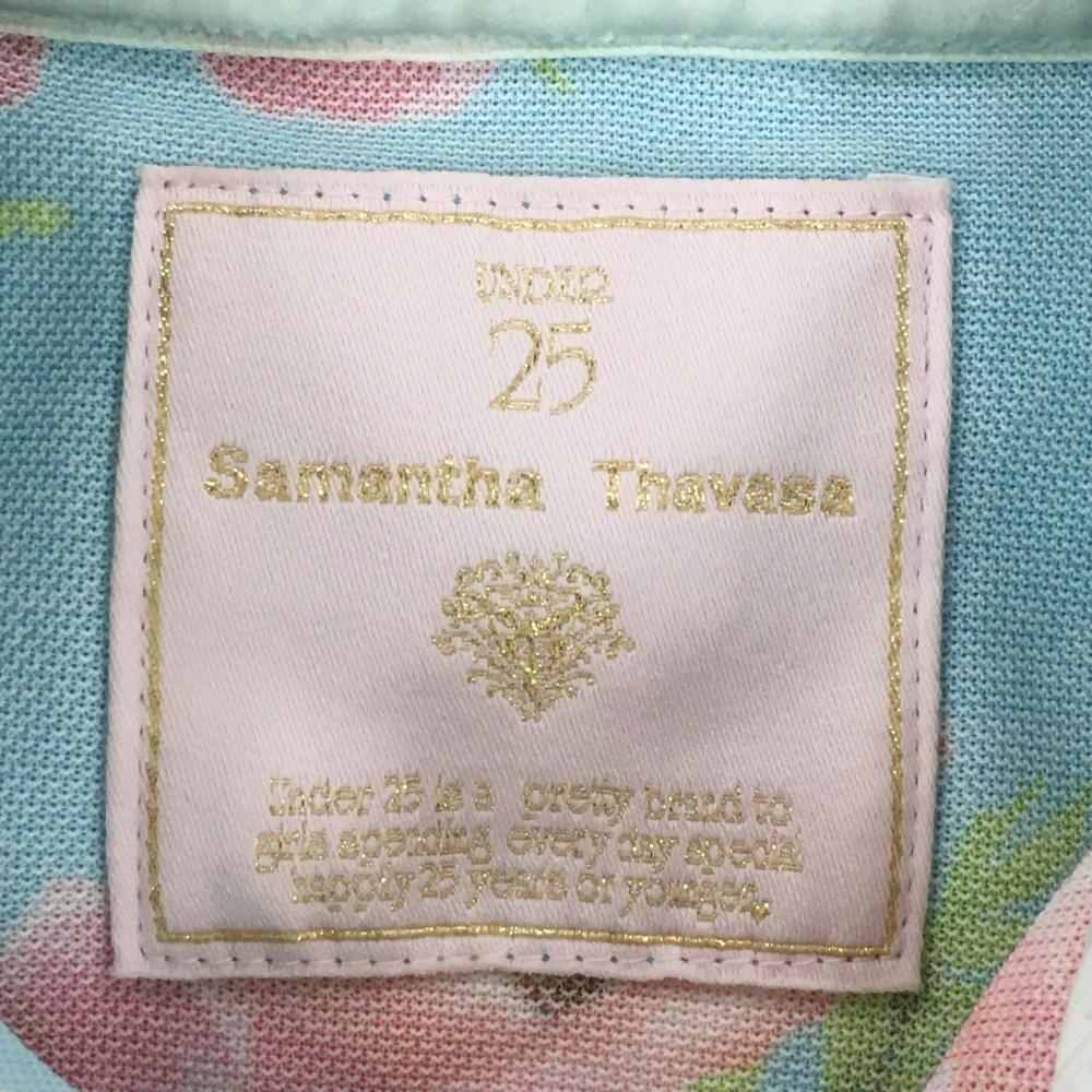 サマンサタバサUNDER25 半袖ポロシャツ ライトブルー×ピンク 花柄 レディース M ゴルフウェア Samantha Thavasa