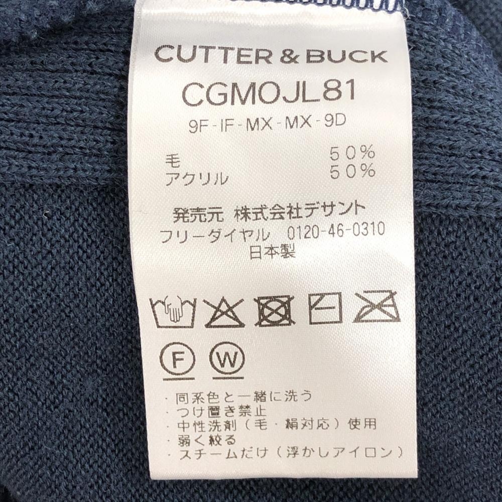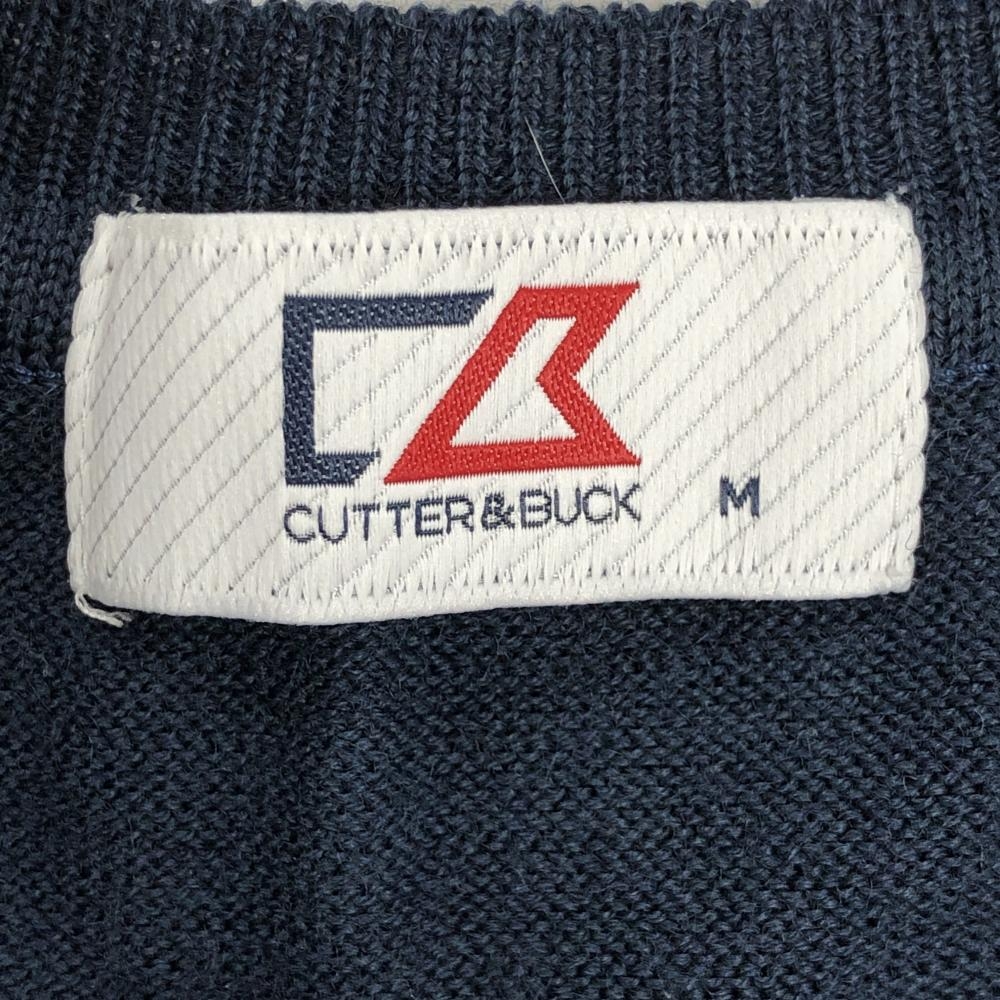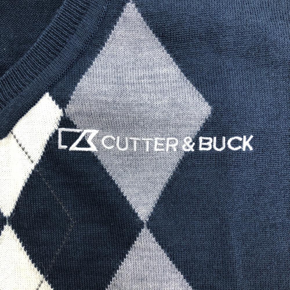 【超美品】カッターアンドバック ニットベスト ネイビー×グレー 一部アーガイル柄 ウール混 Vネック メンズ M ゴルフウェア CUTTER&BUCK